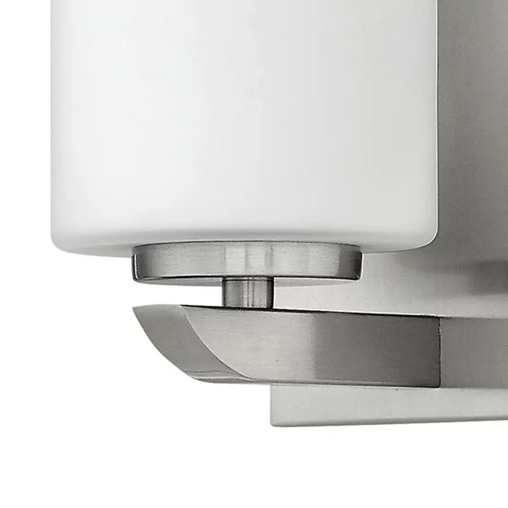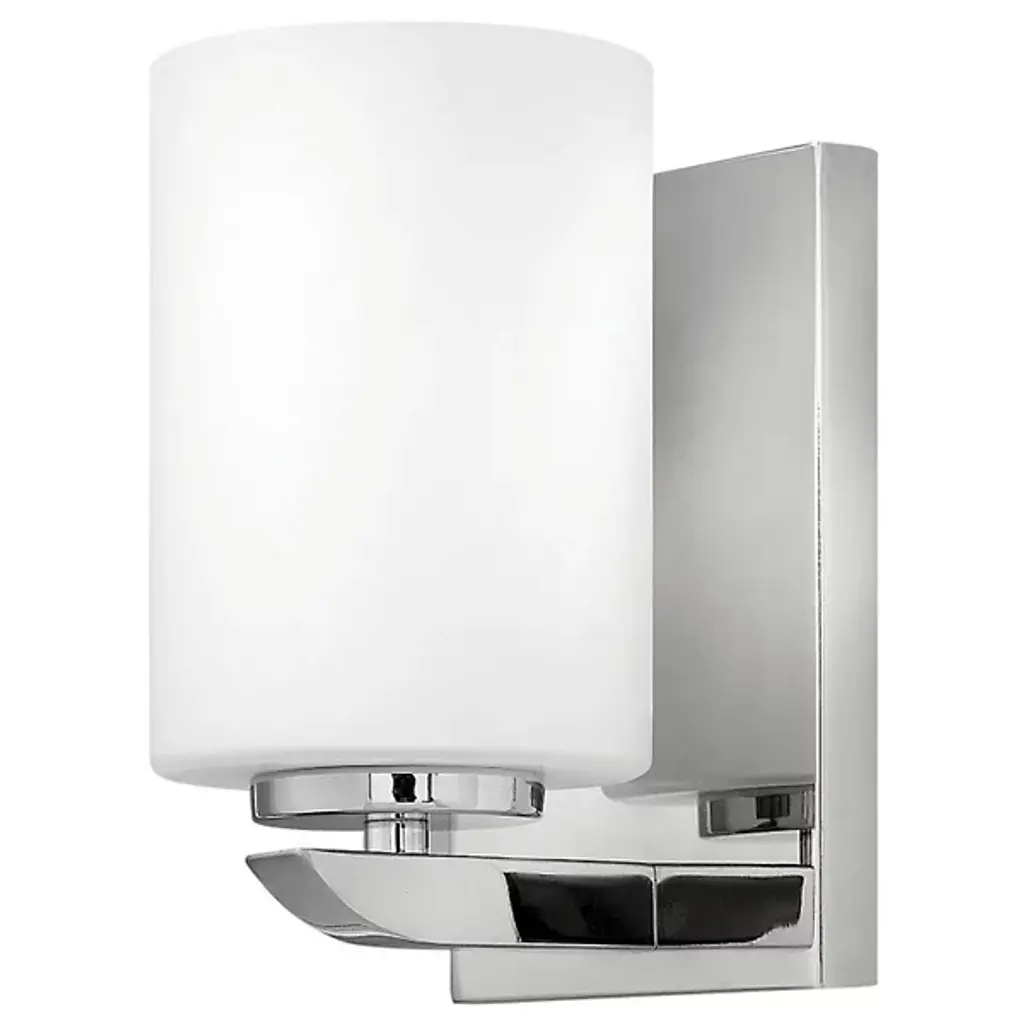 The Hinkley Lighting Kyra Bath Wall Sconce is a streamlined and simple lighting option featuring opal glass contrasted against shiny metalwork. The illumination is diffused through the opaque glass, creating a lit ambient atmosphere in your bathroom or vanity. Simple and to the point, this fixture will provide lighting without distracting from your existing decor.