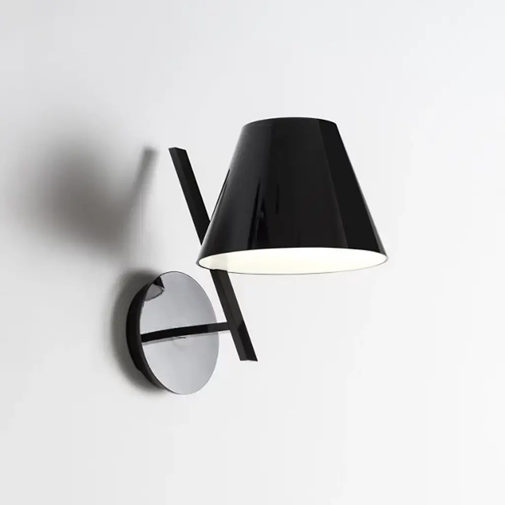 A clever juxtaposition of classic and modern. The La Petite Wall Sconce by Artemide uses simple, geometrical compositions to bring a clean, harmonious look to your living spaces, study rooms, or bedrooms. Its classic lampshade made of plastic is balanced on a matching and elegant inclined arm. This fixture can be mounted to the wall with a circular wall plate. Within this lampshade is an energy-efficient LED lamp (not included) that can deliver a soft ambient as well as task lighting.