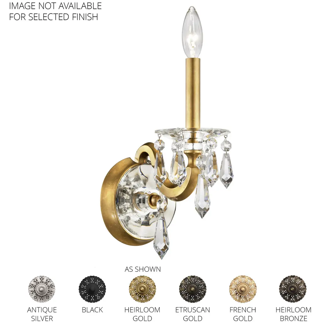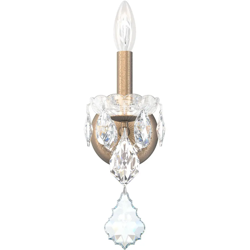 The soft curves, leaf-like motifs, rich crystal garlands, and flower-shaped cups of La Scala evoke the sixteenth-century chandeliers of Rococo. Its ornate arms and scrolls are cast by hand from Schonbek family molds.
