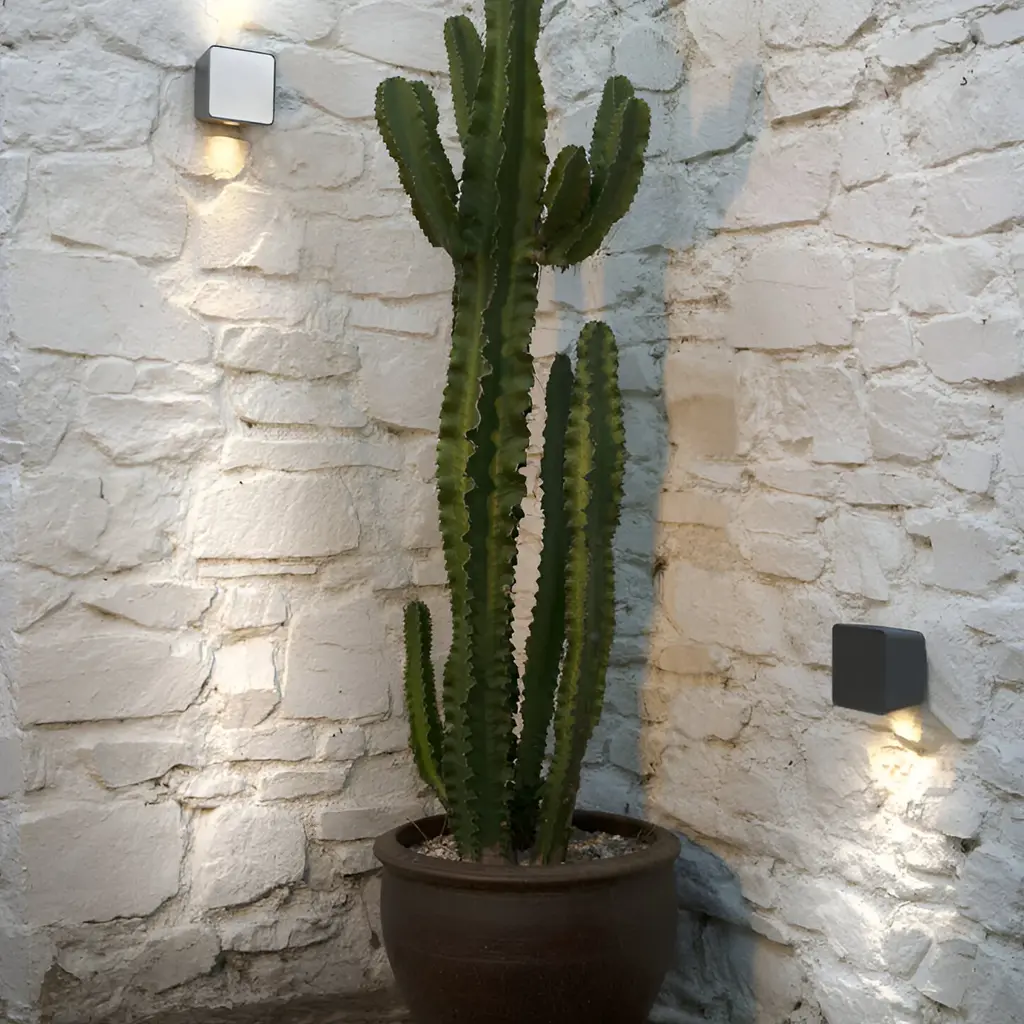 Call it camouflage by decor. Marset's weatherproof Lab Wall Light can either blend in or stand out. Designer Francesc Rifé's LED fixture employs variable front panels—in light or dark iroko wood, simulated stone or metal in black, grey, or white—to match up or contrast with its outdoor surroundings. For commercial spaces, custom graphics can be even incorporated as signage.