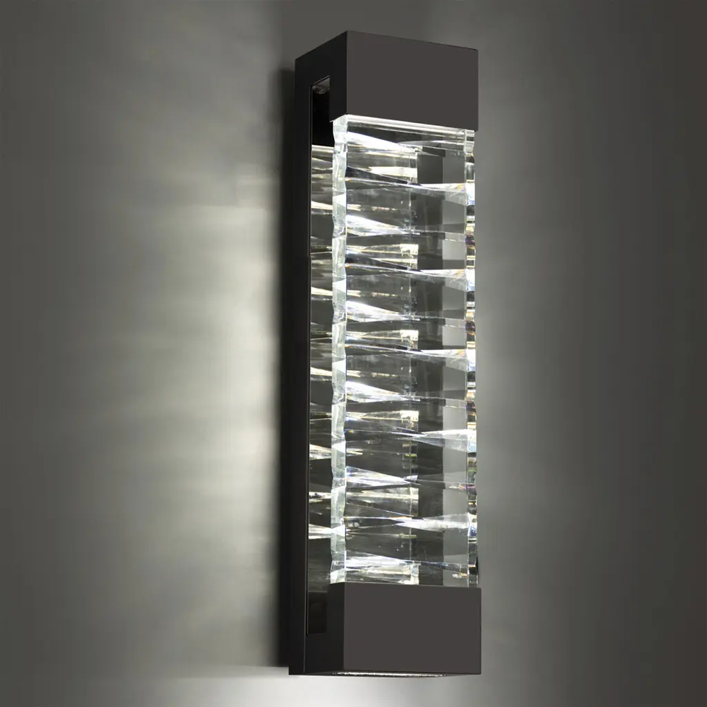 A labyrinth of sparkling Clear Optic Crystal combines the uncomplicated appeal of simple cuts with the playfulness of mirrored reflections. Beyond LED luminaires feature a 3-CCT color temperature selectable switch that can be accessed at the time of installation to toggle between 3000K-3500K-4000K color temperatures. All Schonbek Beyond wet location outdoor luminaires are manufactured using optic crystals that are UV resistant with 316 marine grade stainless steel that is powder coated for a premium weather resistant finish.