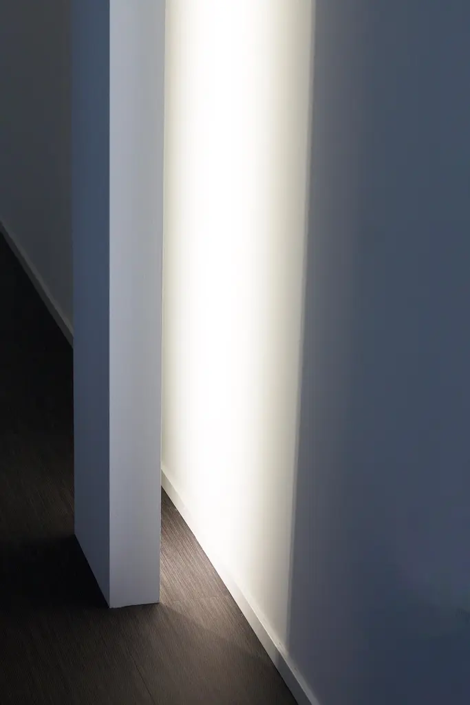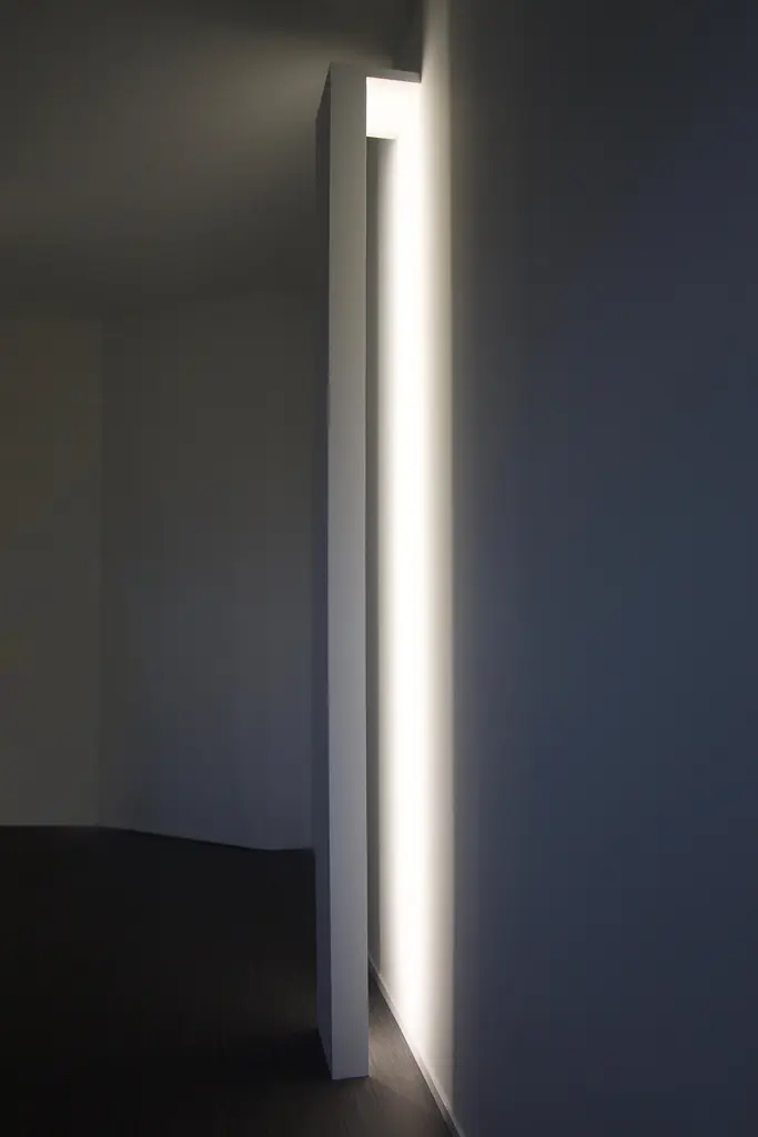A unique design in its simplicity. Tall, stunning, impressive, capable of turning any corridor into a scenic passage or to create a sequence of depths and lights when used in sequence in a larger space. The LED lights will cast firm shadows and define the shape of this wall lamp from floor to ceiling with a game of geometrical shapes that is hard to pull the eyes away from. The essence of this lamp is the light itself. A pure light, so pristine that it should not be seen directly and LABYRINTH does a marvellous work spreading the light and concealing its origin. LABYRINTH works great in minimalist interiors using its lights and shadows to embellish the room rising from the floor.Element in photos dimensions (cm) W 35 x D 25(15 of space) x H 275Max height : 345 cmDistance from wall: 25cm.Handmade in Italy