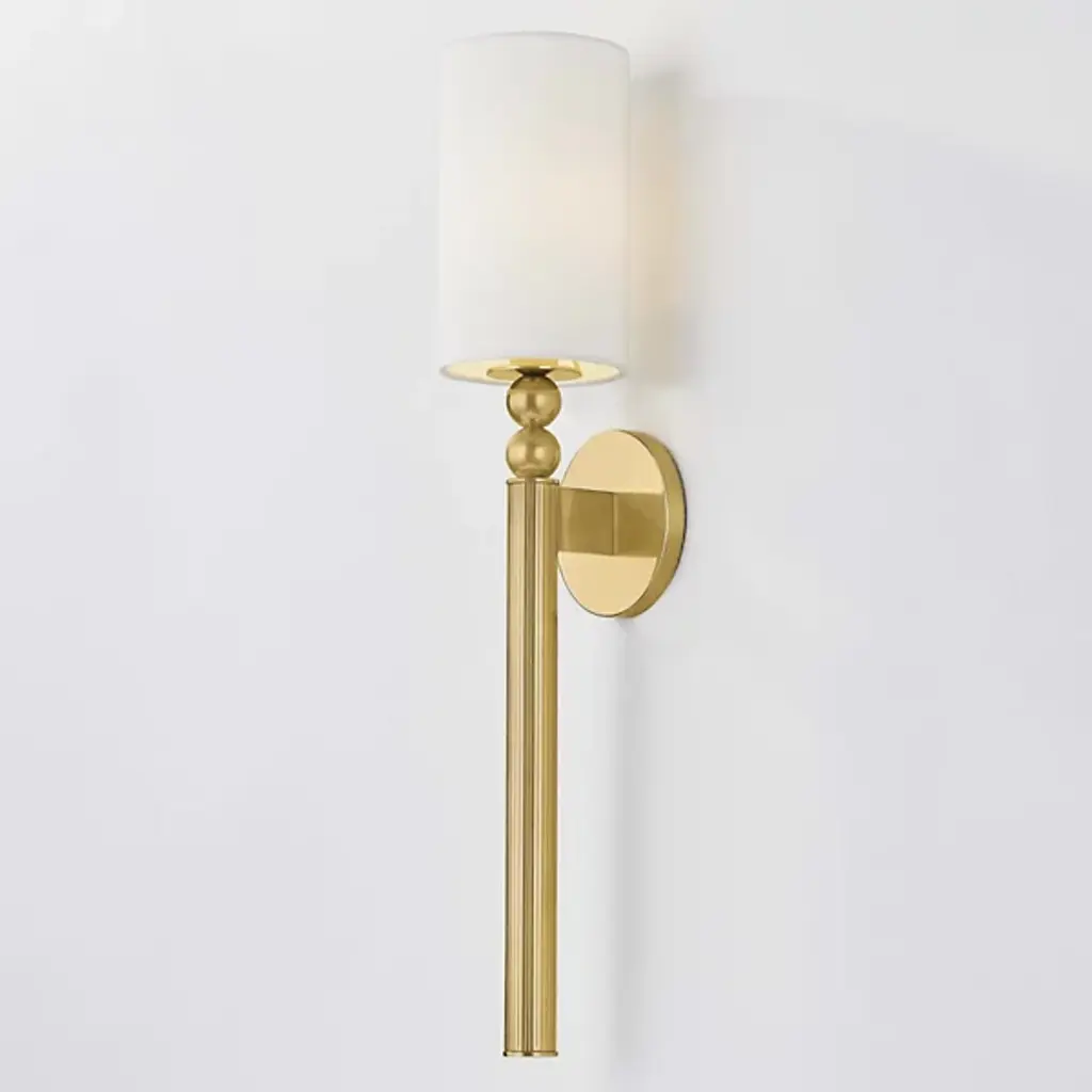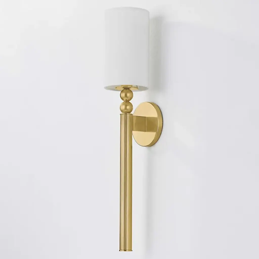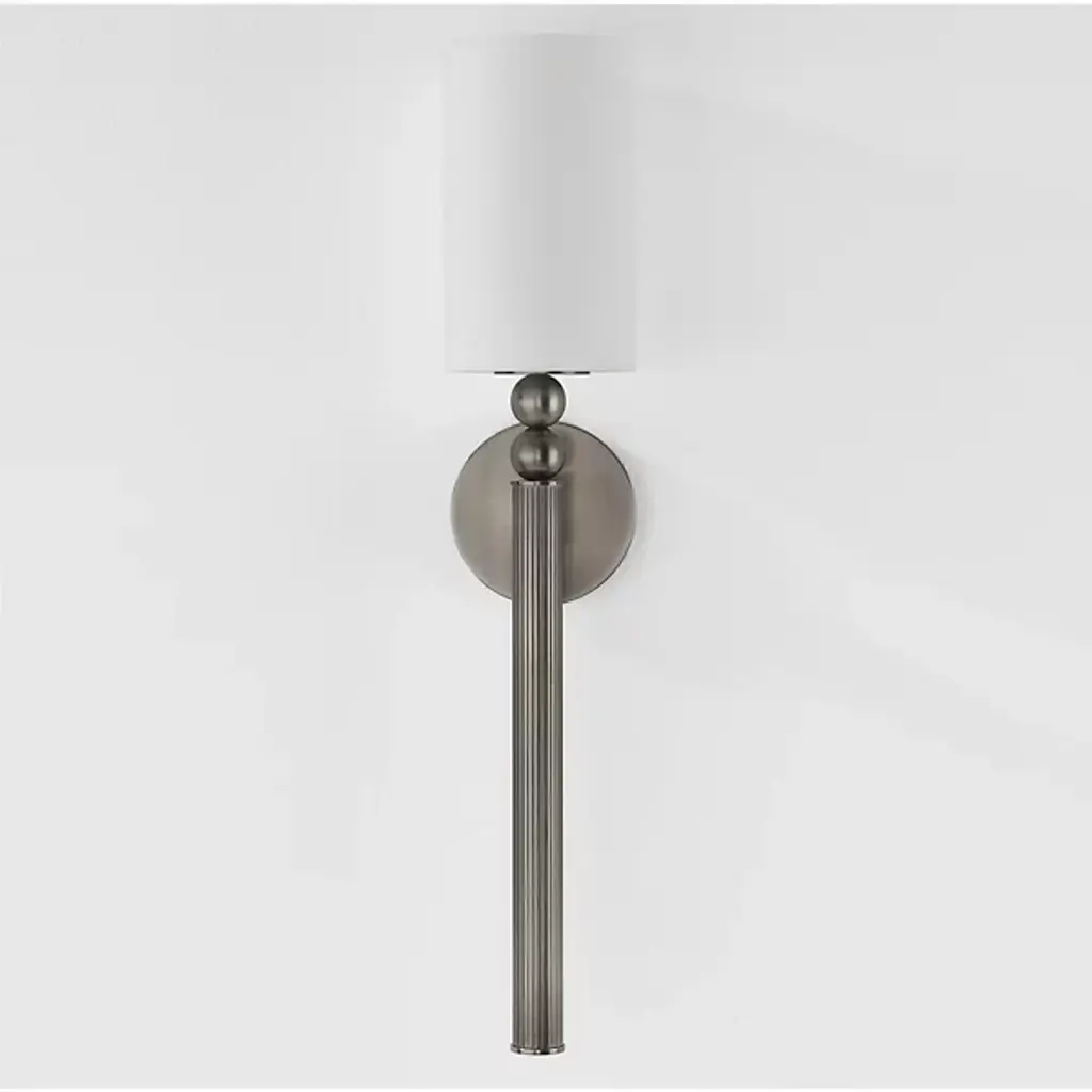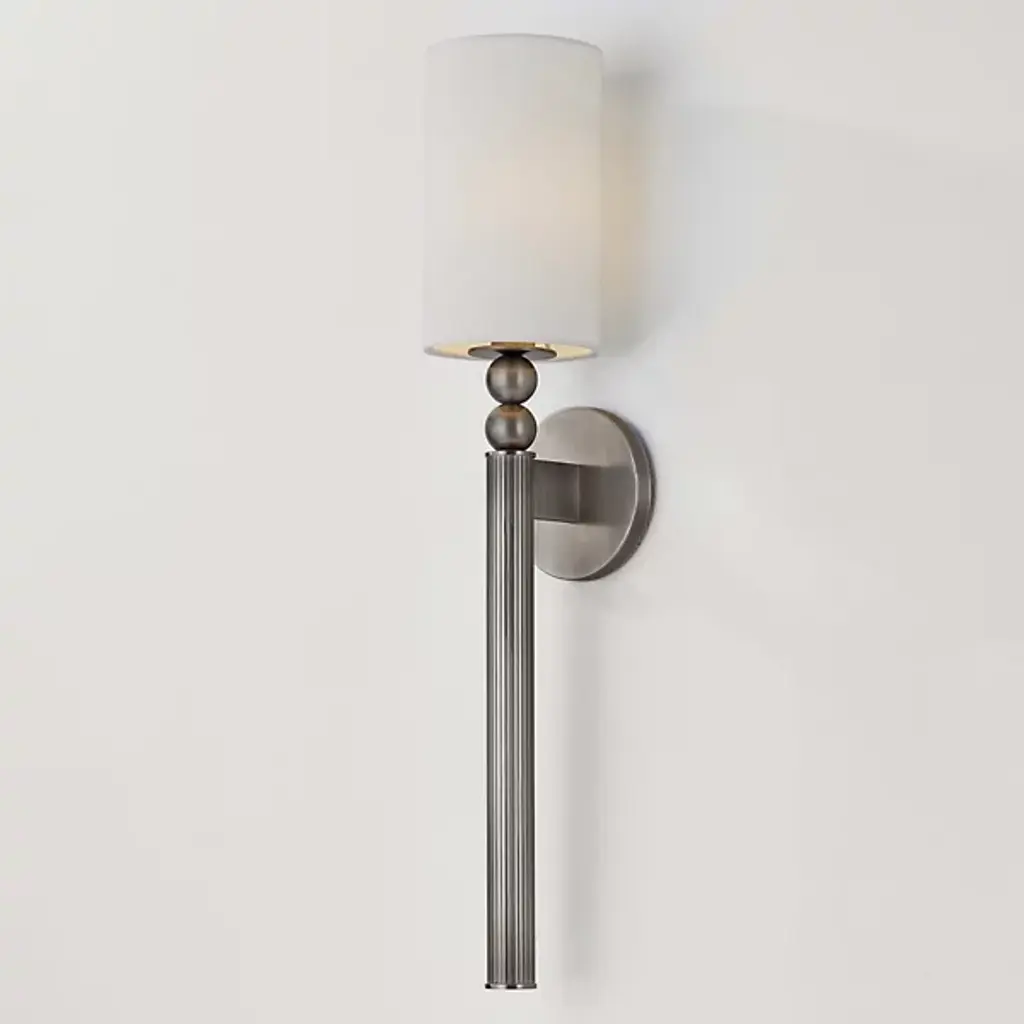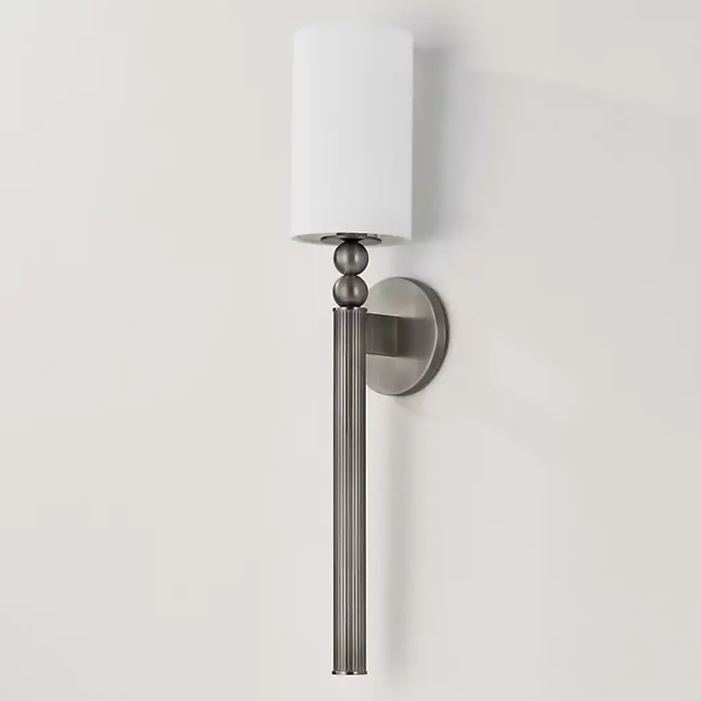 The Lakeport Wall Sconce from Hudson Valley Lighting honors traditional torch design with modern restraint. A fluted stem rises to stacked spheres that punctuate its length. The cylindrical shade continues the upward momentum while diffusing light. Each decorative element plays a purposeful role in the overall alignment. This sconce brings quiet distinction to powder rooms and hallways, where its proportions create pleasing rhythms when installed in series.
