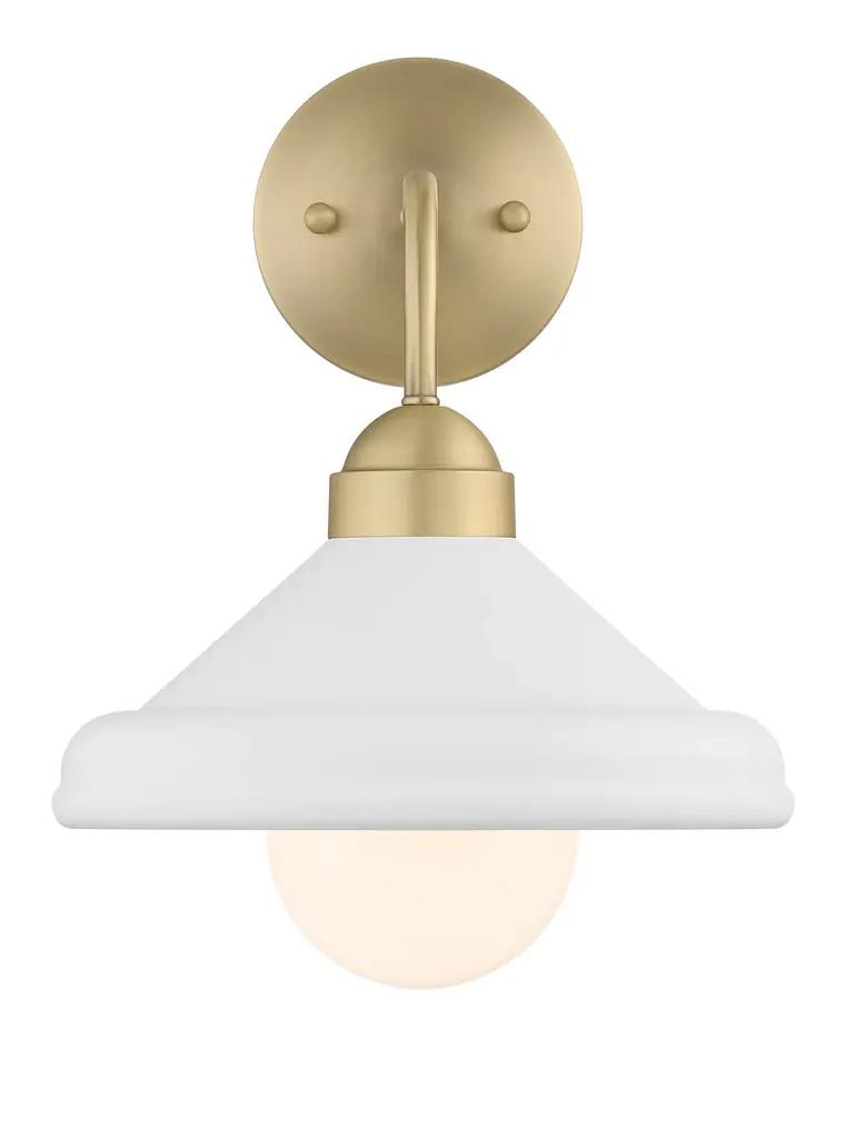 Features: Model: IUQUVMHZ24623O7Material: Metal/GlassColor: Black and GoldStyle: ModernFinish: Matte Black and GoldProduct Dimension: L5.5"• W7.5"• H10" Canopy Dimension: L5"• W5"• H1"Shade Material: GlassShade Color: Frosted GlassShade Shape: GlobeLocation: DampDimmable: Yes, when used with dimmer switch and dimmable bulbsKey Features: Bulb Type: B10 LED/Incandescent Bulb Base: E-12 Maximum Wattage: 40W Number of Bulb: 1 Bulb Included: N Voltage: 120V Mount Type: Wall Mounts Assembly Required: Yes Mounting Accessory Included: Yes Power Source: Hardwired Professional installation recommended