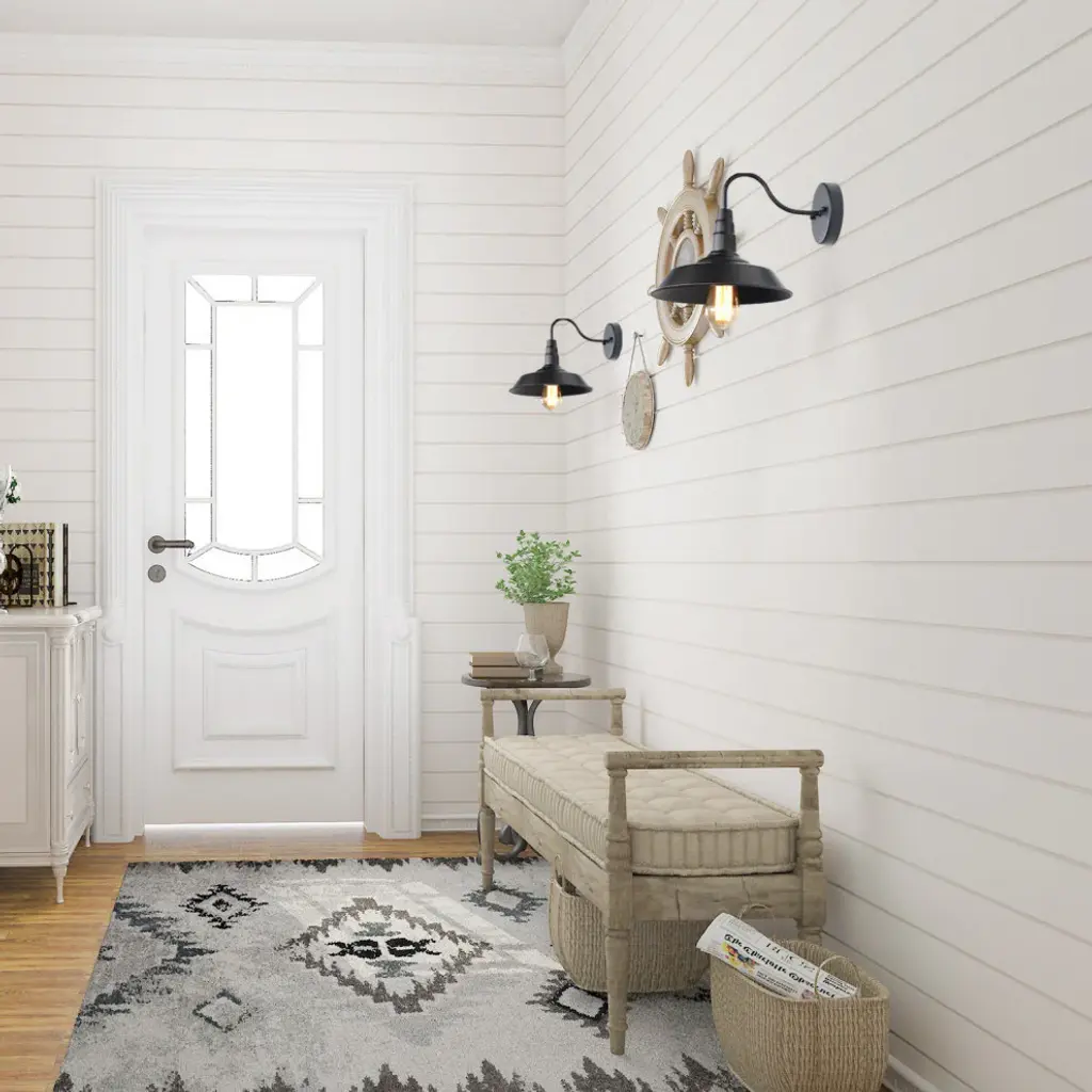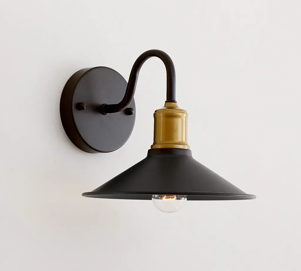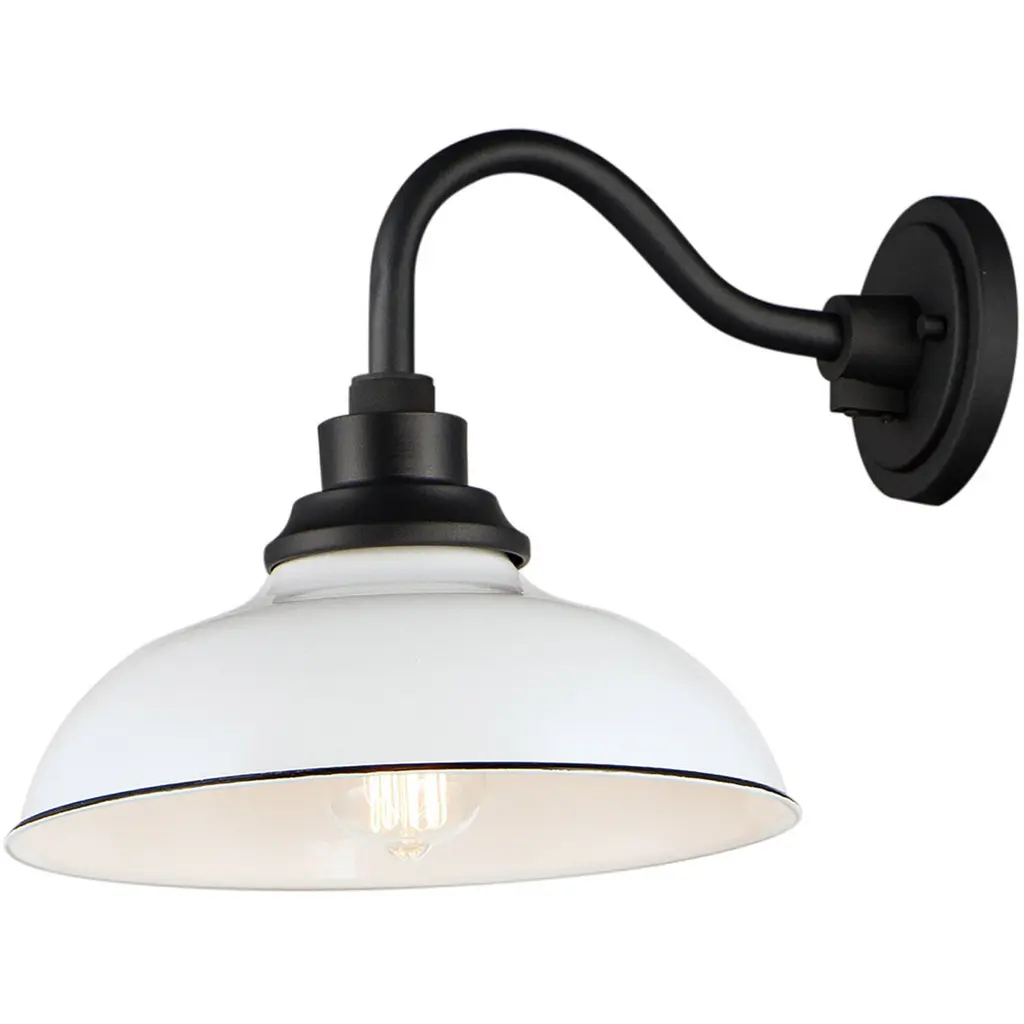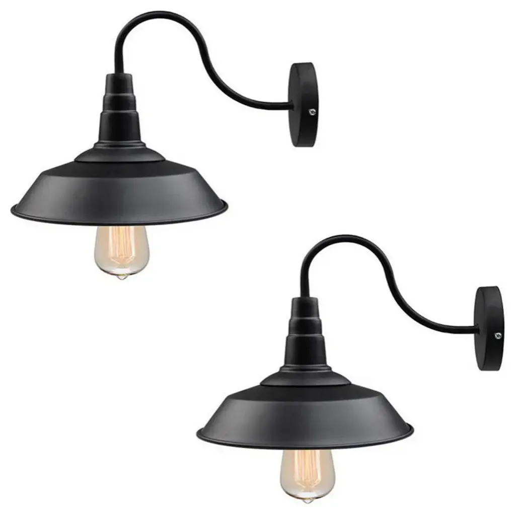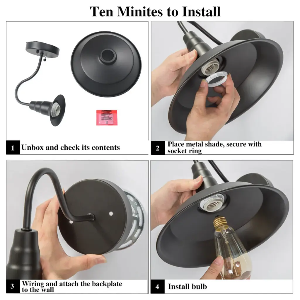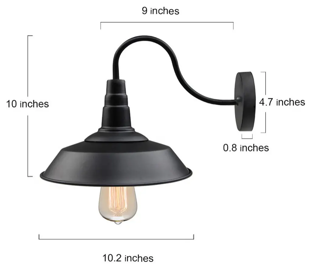 Features:With its gooseneck Steel arm design, the wall sconce is classic warehouse lighting for any industrial styled space. The black metal dome shade offers an extra dose of industrial style. Made of durable metal, it offers a clean, casual look and general all-over room lighting. The polished gooseneck design is the classic design of vintage fixtures adding warm and cozy lighting effects.SpecificationMaterials: SteelShade Diameter: 10"Wall mount back plate diameter: 4.7"Style: Loft/IndustrialLight Direction: DownAssembly Required: YesDimmable: NMounting Accessory Included: YesBase Type: E26Voltage: 120VPower Source: HardwiredETL listedSuitable Places: Indoor Use onlyNotices: WE SUGGEST INSTALLATION BY A LICENSED ELECTRICIAN.