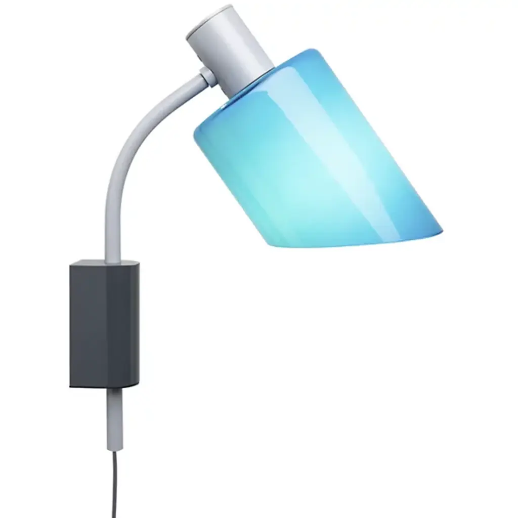 The Lampe de Bureau Wall Sconce from Nemo is a luminous testament to a design legacy, born from Charlotte Perriand's visionary creativity in 1965. Initially designed to illuminate mirror reflections at the the Boussois glassworks, this iconic piece transcends its initial purpose as a residential or even commercial lighting solution. Its meticulously crafted design features a white inner diffuser that preserves the pure essence of the light, while the translucent molded glass exterior radiates a captivating, colorful brilliance. Anchored by a sleek steel wall plate, this Italian-crafted sconce seamlessly marries historical design with contemporary refinement.