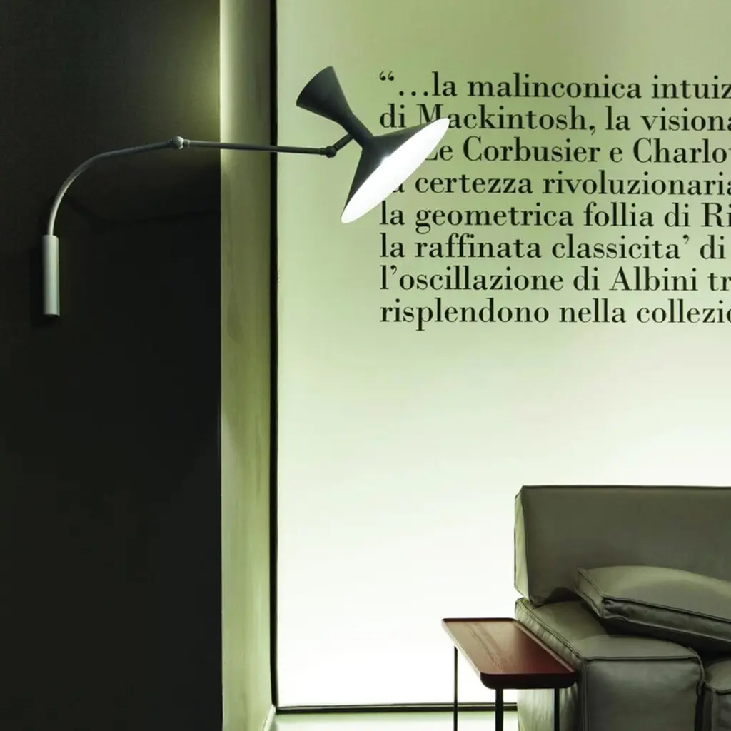 Nemo Lighting’s Lampe de Marseille Mini is a smaller version of the sculptural wall light designed by the world-famous architect Le Corbusier for the Unité d’Habitation in Marseille at the turn of the 1950s. The position of the light is easy to adjust since the arm features two joints and turns from side to side. The striking shade consists of two aluminum cones that offer direct and indirect light. Lampe de Marseille is a true statement piece that has and will stand the test of time.