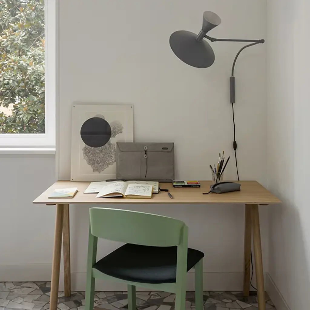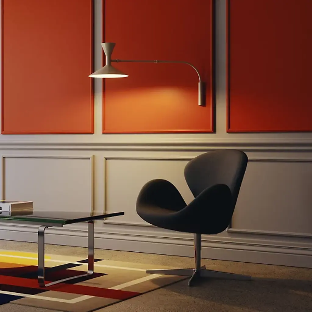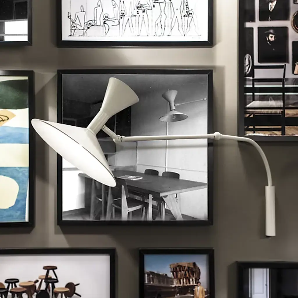 Adjustable and sculptural. The Lampe de Marseille Mini Wall Sconce from Nemo features simple beauty that maximizes efficiency. It was designed by Le Corbusier in the early 50s, known for creating straightforward solutions to design needs. Originally designed for Le Corbusier’s housing development in Marseille, France, this product accommodates the modern home’s need for saving space and optimizing efficiency. The wall sconce leans forward and provides 180 degrees of swiveling and 220 degrees of angle adjusting. The shade is made out of spun aluminum, and it provides a soft, ambient glow throughout your room.