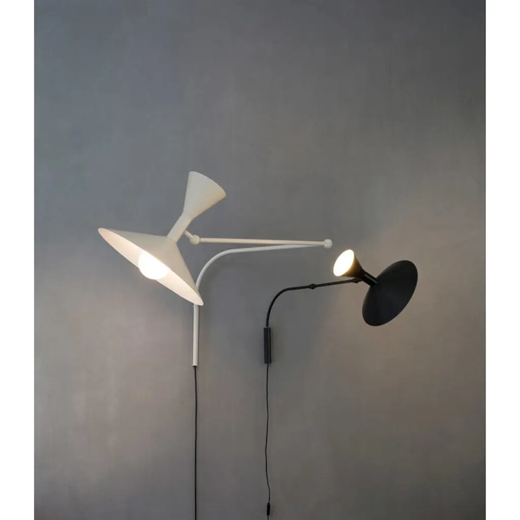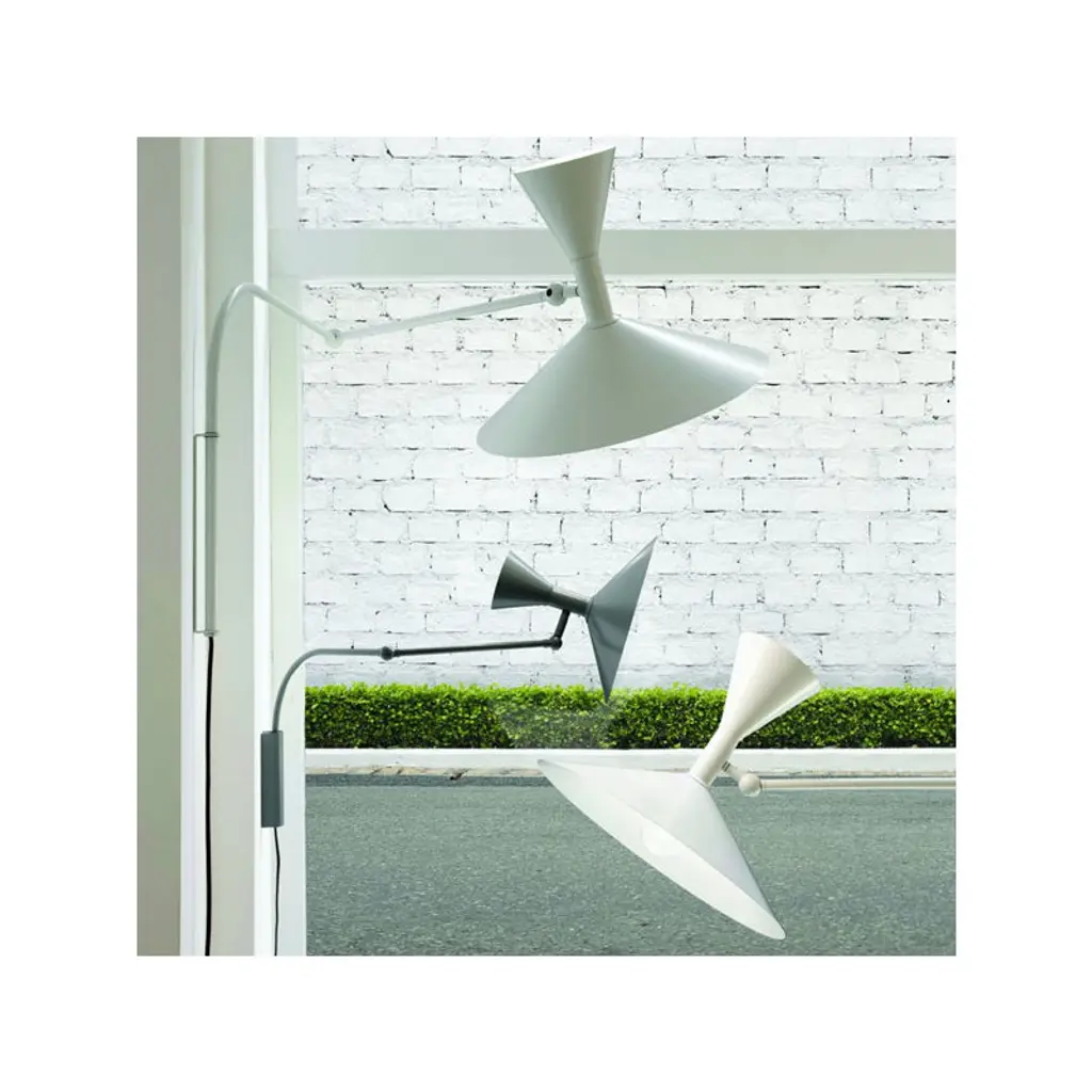 Nemo Lighting’s Lampe de Marseille is a sculptural wall light designed by the world-famous architect Le Corbusier for the Unité d’Habitation in Marseille at the turn of the 1950s. The position of the light is easy to adjust since the arm features two joints and turns from side to side. The striking shade consists of two aluminum cones that offer direct and indirect light. Lampe de Marseille is a true statement piece that has and will stand the test of time.