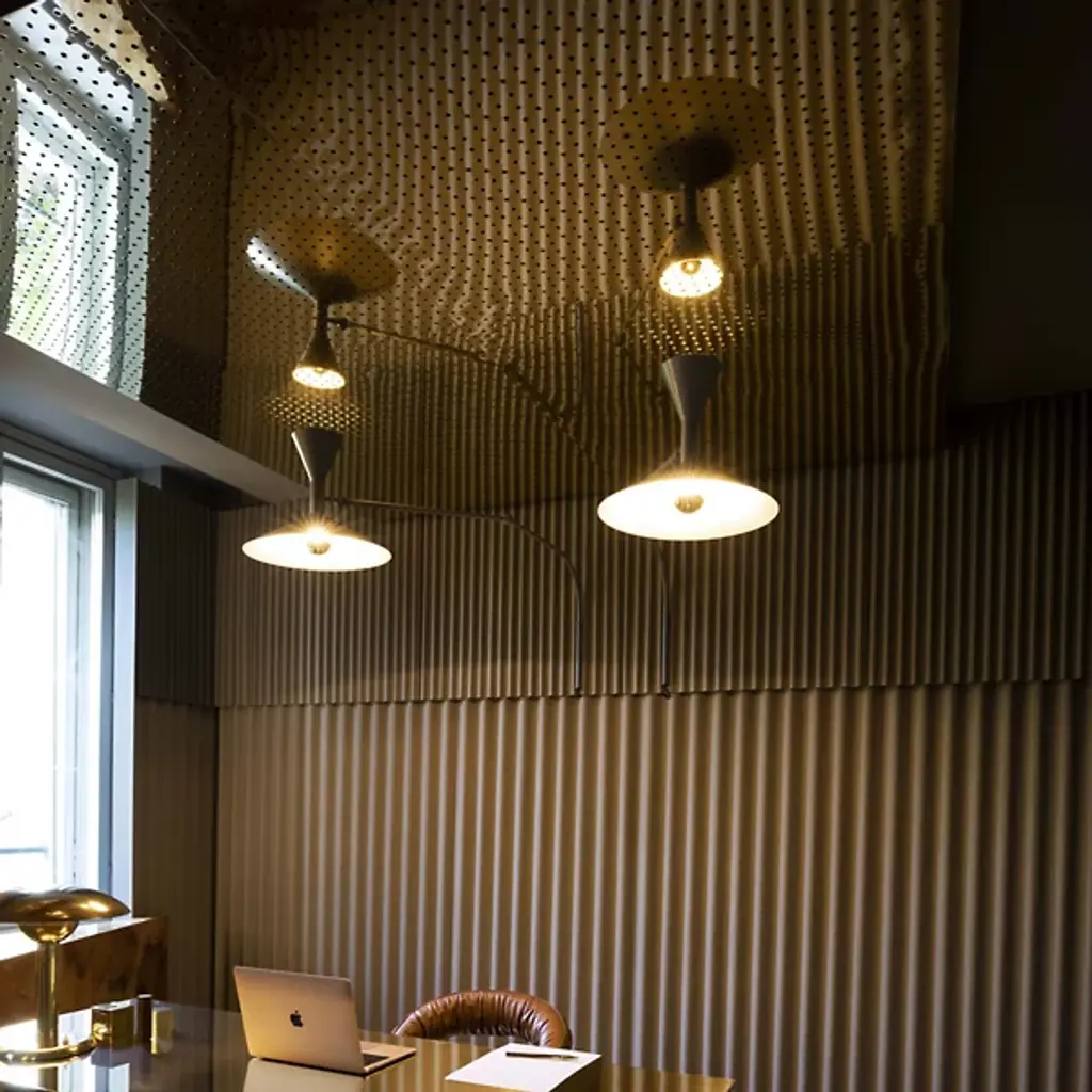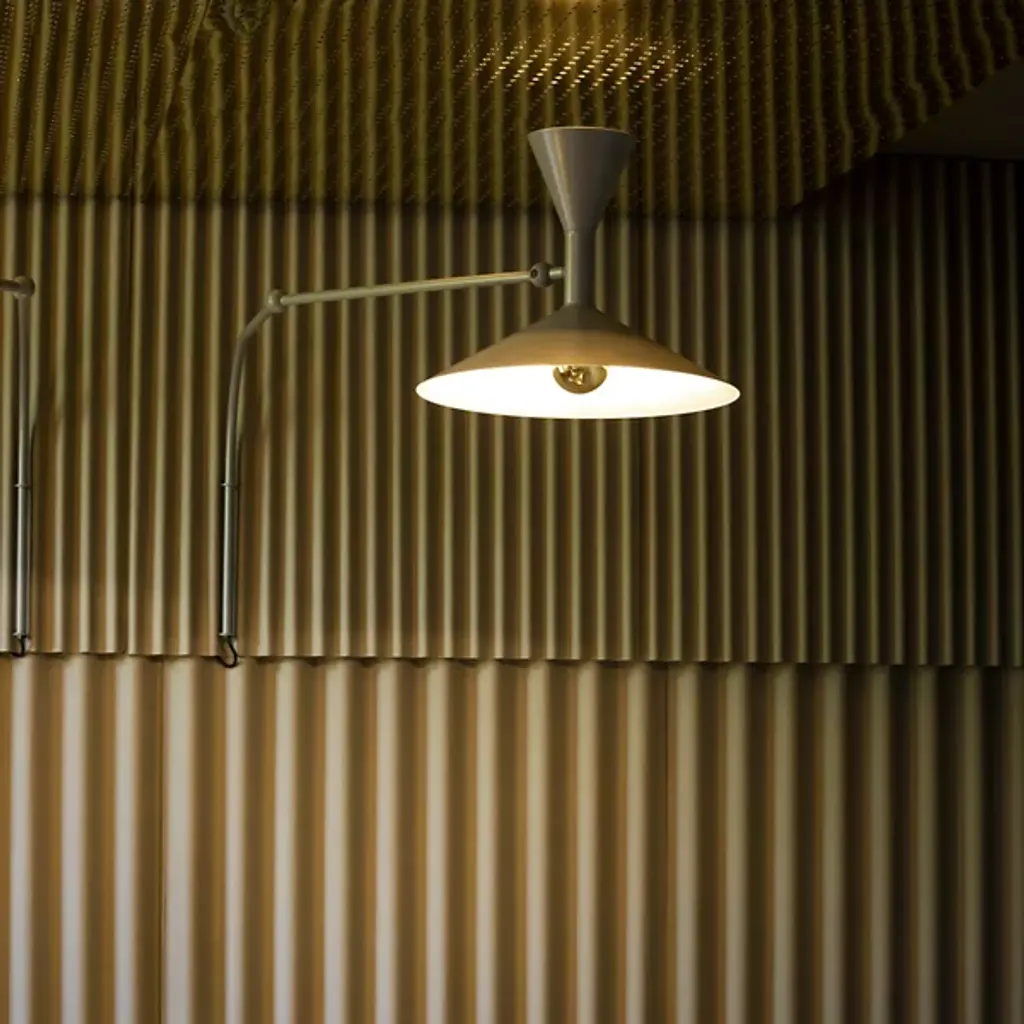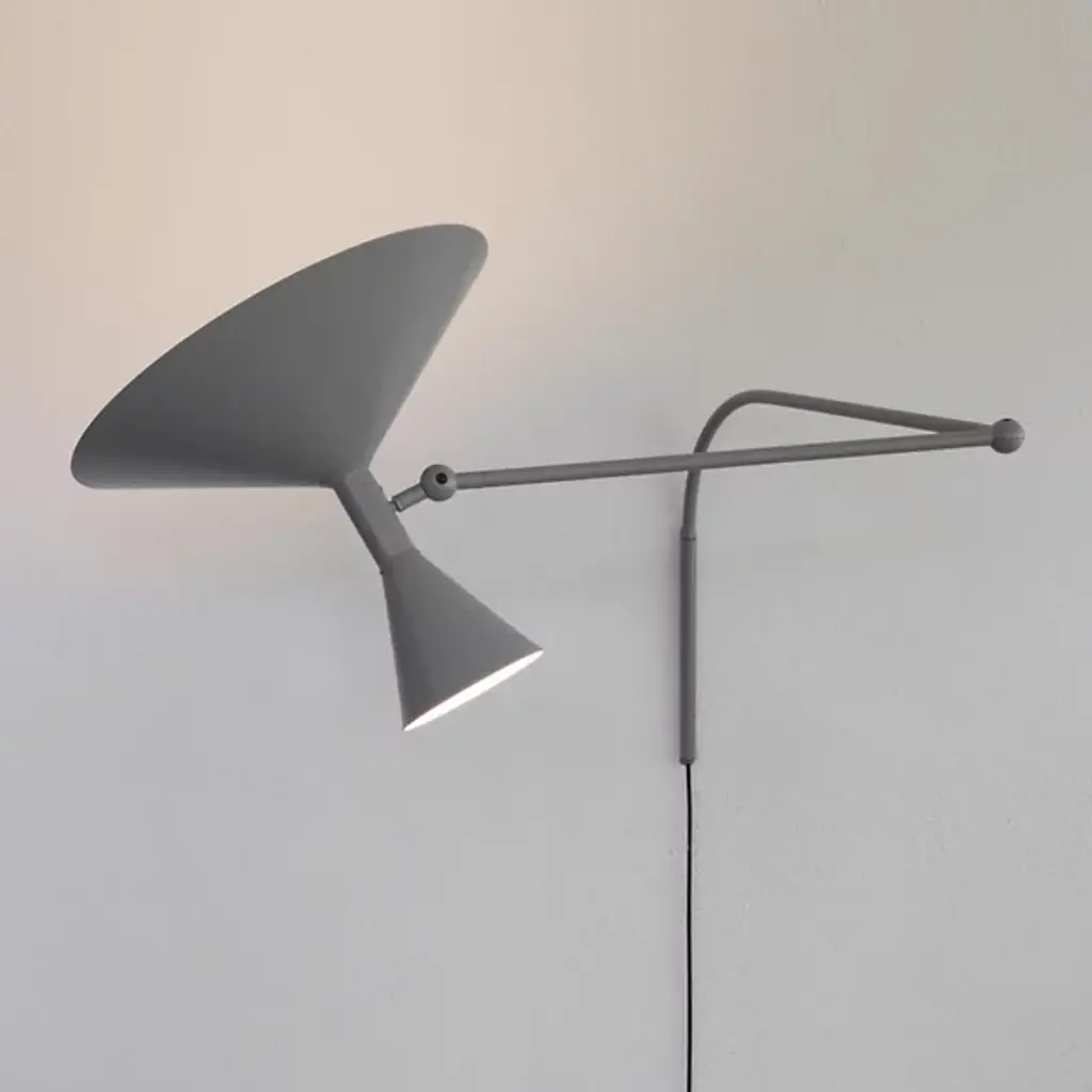 From the mind of the modernist icon Le Corbusier. The Lampe de Marseille Wall Sconce from Nemo features adjustable lighting with a refined aesthetic. Corbusier—an icon of 50s-era modernist design—places his emphasis on functionality over flashiness. He also believes that the cone is the most beautiful form, and the double cone design of the light head reflects this belief. The shade is crafted from spun aluminum. The shade swivels 340 degrees, and the arm can swivel 180 degrees for custom lighting.