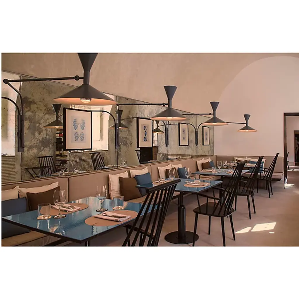 From the mind of the modernist icon Le Corbusier. The Lampe de Marseille Wall Sconce from Nemo features adjustable lighting with a refined aesthetic. Corbusier—an icon of 50s-era modernist design—places his emphasis on functionality over flashiness. He also believes that the cone is the most beautiful form, and the double cone design of the light head reflects this belief. The shade is crafted from spun aluminum. The shade swivels 340 degrees, and the arm can swivel 180 degrees for custom lighting.