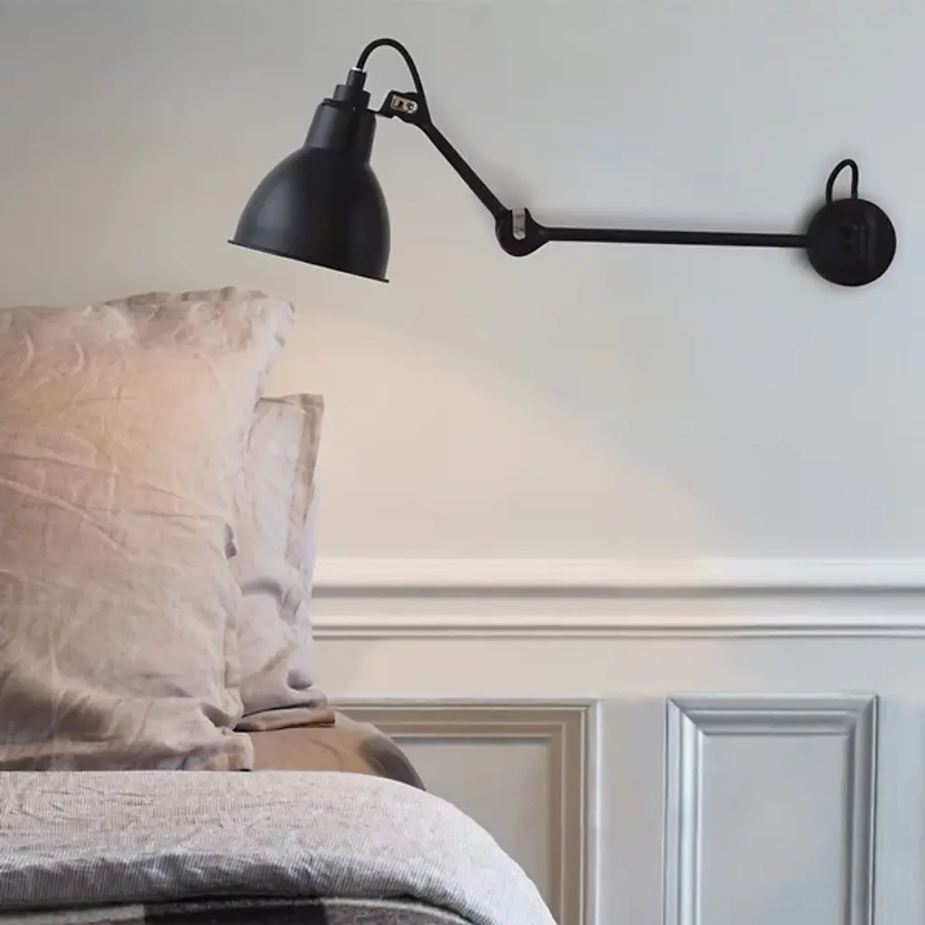 Flawless functionality and enduring style define the Lampe Gras 204 Long Wall Sconce by DCW editions. A creation by French inventor Bernard-Albin Gras in 1921, this industrial-style fixture originally intended for office and factory use was updated to become an ideal bedside lamp. A circular wall mount anchors the fixture, sprouting two linked, adjustable arms that support an articulating shade around a single lamp. This clever arrangement uses the shade’s smooth interior and curved shape to cut glare from the sides while focusing its light outward in a cohesive cone.