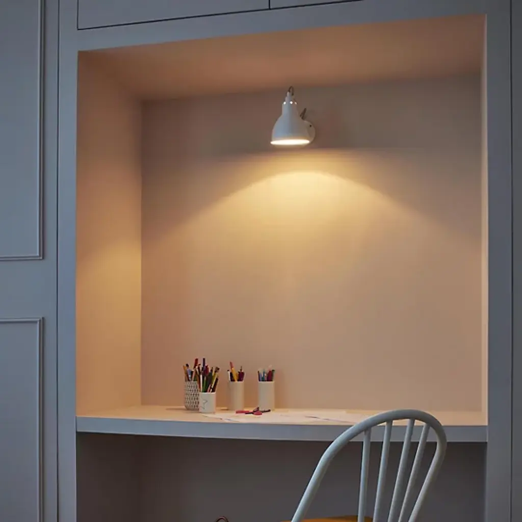Versatile, sophisticated, refined. While designed in 1921 by French inventor Bernard-Albin Gras, the Lampe Gras 304 Plug In Wall Sconce from DCW Editions shows the power of innovative engineering, serving as a clear example of an enduring design. Bernard-Albin Gras south to enrich life in the work setting by providing a wealth of adjustable options on his luminaires. This tailored approach to lighting found its way to the home, making Gras’s designs fitting for task and ambiance purposes. This scone carries tradition, using a Bakelite ball system to provide adjustability for the arm and a clean joint to adjust the shade. The clean shade gives light reaching your eyes a glare-free quality. Its geometric shape and the industrial shapes of the structure are elegantly silhouetted when the lights come on. Light streams through the shade for a clean, directed glow.