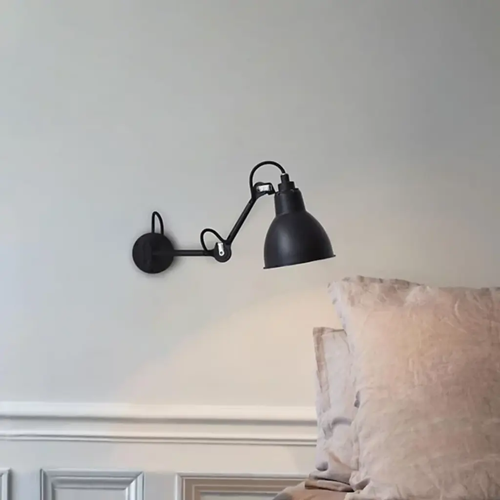 Sleek and stylish, the Lampe Gras N°204 Wall Sconce from DCW editions is a bold and worthy choice for brightening your indoor spaces and work well with industrial, modern, or even contemporary décor. Designed in 1921 by Bernard-Albin Gras, the lighting family does not feature screws or welded joints – an intentional decision that spread a touch of elegance throughout the offices and factories they were originally used in. Held to the wall by a single round mount, it extends two short, pivoting arms to a posable bell-shaped steel shade that focuses the lamping below into a powerful spot of direct light.