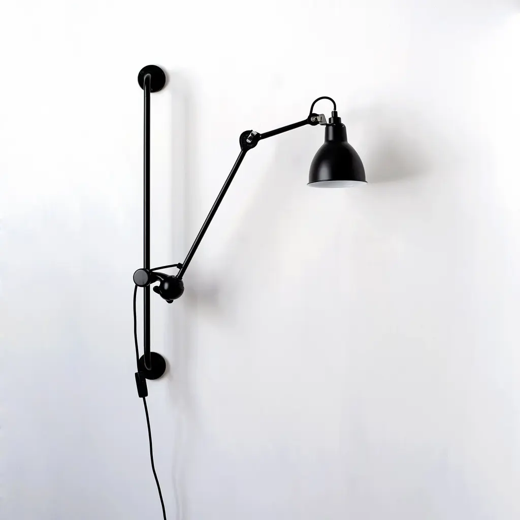 Pioneering French inventor Bernard-Albon Gras combines a pair of innovations from his celebrated 1921 lamp series—an articulated arm and a sliding wall mount—to pivot and move the light. With its groundbreaking functional aesthetic and sturdy character, N°210 makes for a timeless addition at bedside, above a desk or near a table. Fashioned in black satin-finish steel, the lamp offers a choice of conic or round shade in colored, chromed or coppered variations.