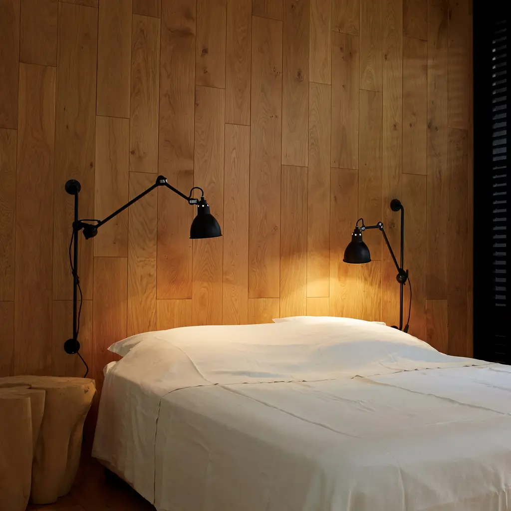 Pioneering French inventor Bernard-Albon Gras combines a pair of innovations from his celebrated 1921 lamp series—an articulated arm and a sliding wall mount—to pivot and move the light. With its groundbreaking functional aesthetic and sturdy character, N°210 makes for a timeless addition at bedside, above a desk or near a table. Fashioned in black satin-finish steel, the lamp offers a choice of conic or round shade in colored, chromed or coppered variations.