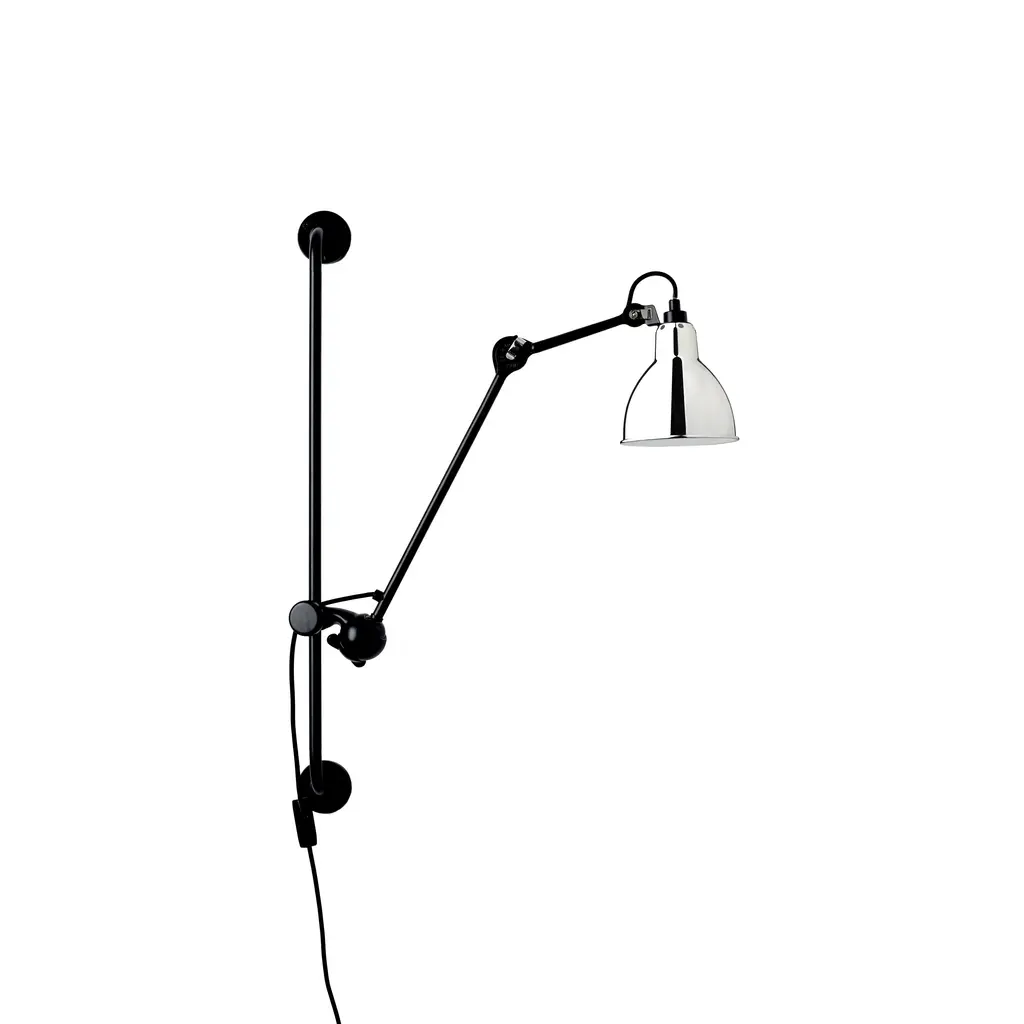 Pioneering French inventor Bernard-Albon Gras combines a pair of innovations from his celebrated 1921 lamp series—an articulated arm and a sliding wall mount—to pivot and move the light. With its groundbreaking functional aesthetic and sturdy character, N°210 makes for a timeless addition at bedside, above a desk or near a table. Fashioned in black satin-finish steel, the lamp offers a choice of conic or round shade in colored, chromed or coppered variations.