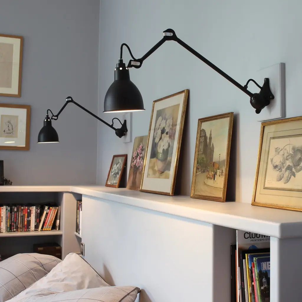 With N°222, Bernard-Albin Gras' signature light comes in a usefully compact, wall-mounted version with plug-in cord. First introduced in 1921, the innovative articulated-arm design revolutionized lighting in both homes and offices. Both lastingly efficient and a design icon, it's just as vital a century later with its sleek steel frame in satin-black finish and an assortment of shade choices including bold accent hues, varied metal finishes and frosted glass.