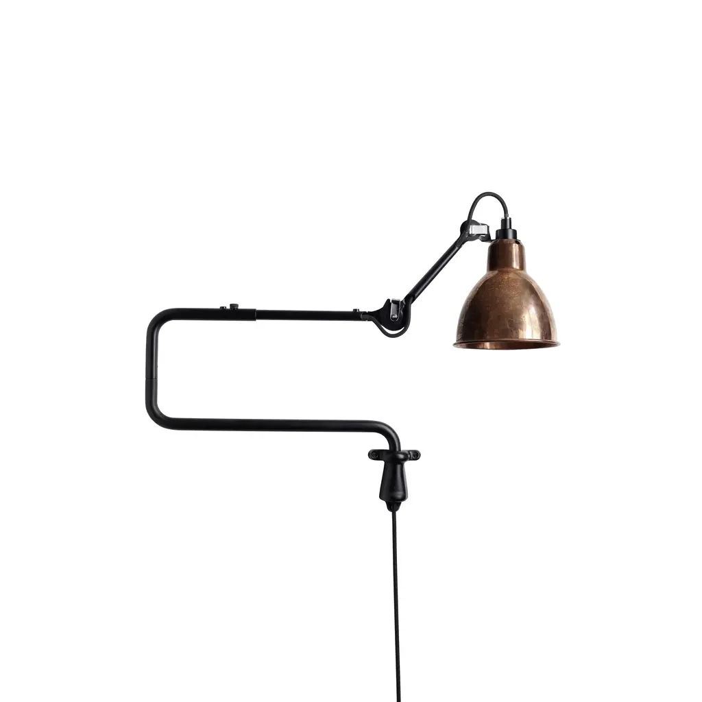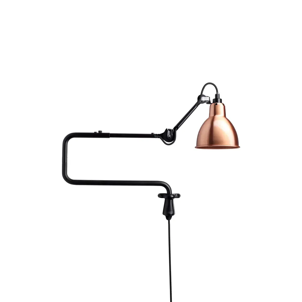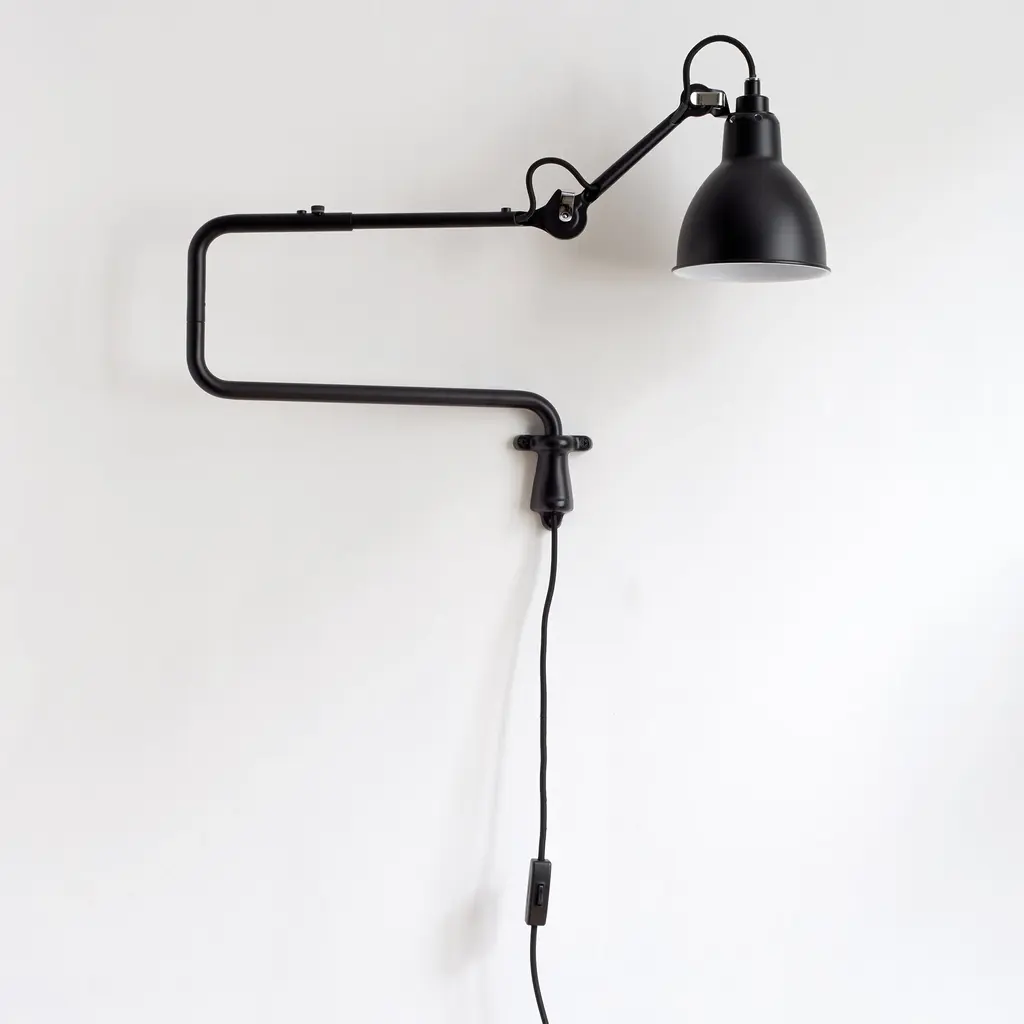 A stellar example of Bernard Albin-Gras’ innovative articulated-arm lighting concept, N°303 makes a perfect desk or bedside accompaniment. The wall-mounted light can be precisely adjusted via its multi-jointed construction. In satin-black steel, the fixture radiates timeless chic, with a choice of round or conic metal shade in a number of varied finishes.