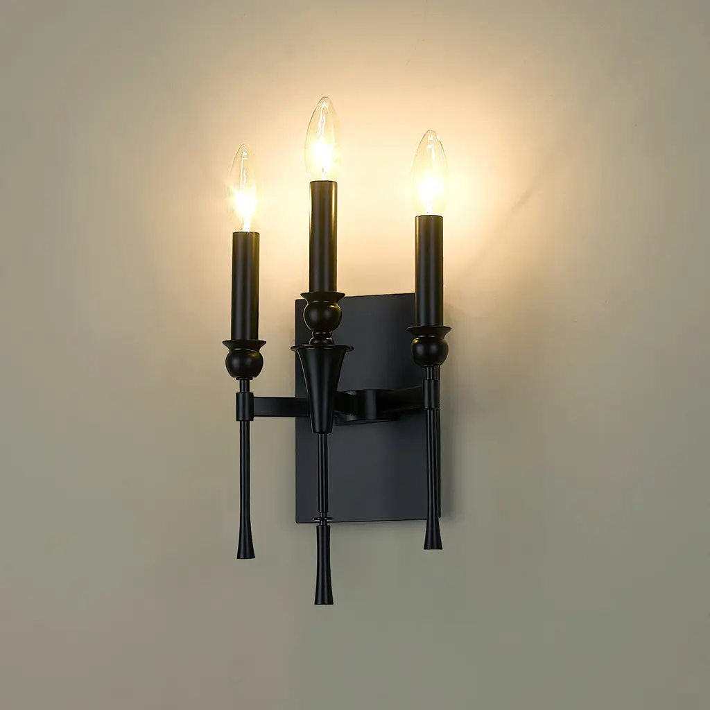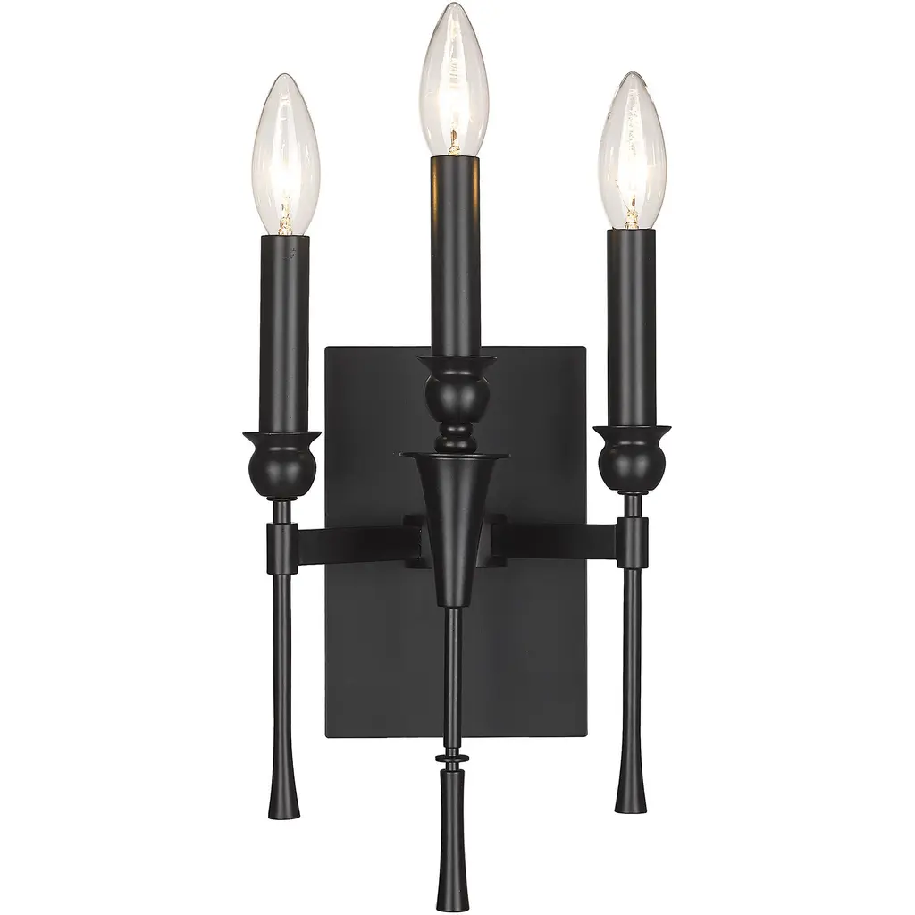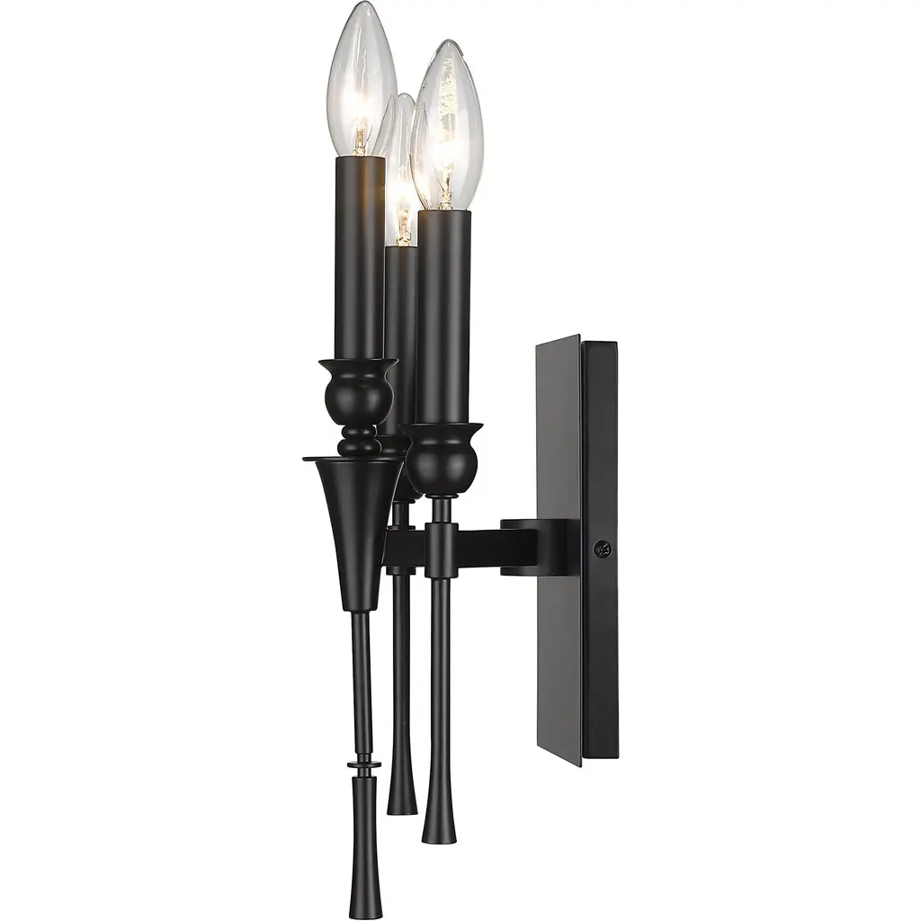 Bring modern sophistication into your home with the Golden Lighting Landon 3-light Wall Sconce in Matte Black. This stylish sconce features a sleek design without a shade, providing a warm glow that enhances various interiors.The matte black finish is versatile and timeless, making it suitable for both casual and formal settings, while its smooth texture delivers understated luxury.Enhance hallways, stairways, and bathrooms or add cozy ambiance in bedrooms, dining rooms, and entry points. This wall sconce is damp location rated, suitable for areas with occasional moisture. It requires 3 E12 candelabra base bulbs (not included) with a maximum wattage of 60 per bulb, and has overall dimensions of 7.5"W x 13"H x 4.88"D.Elevate your lighting design with this exquisite sconce that merges style and quality craftsmanship.