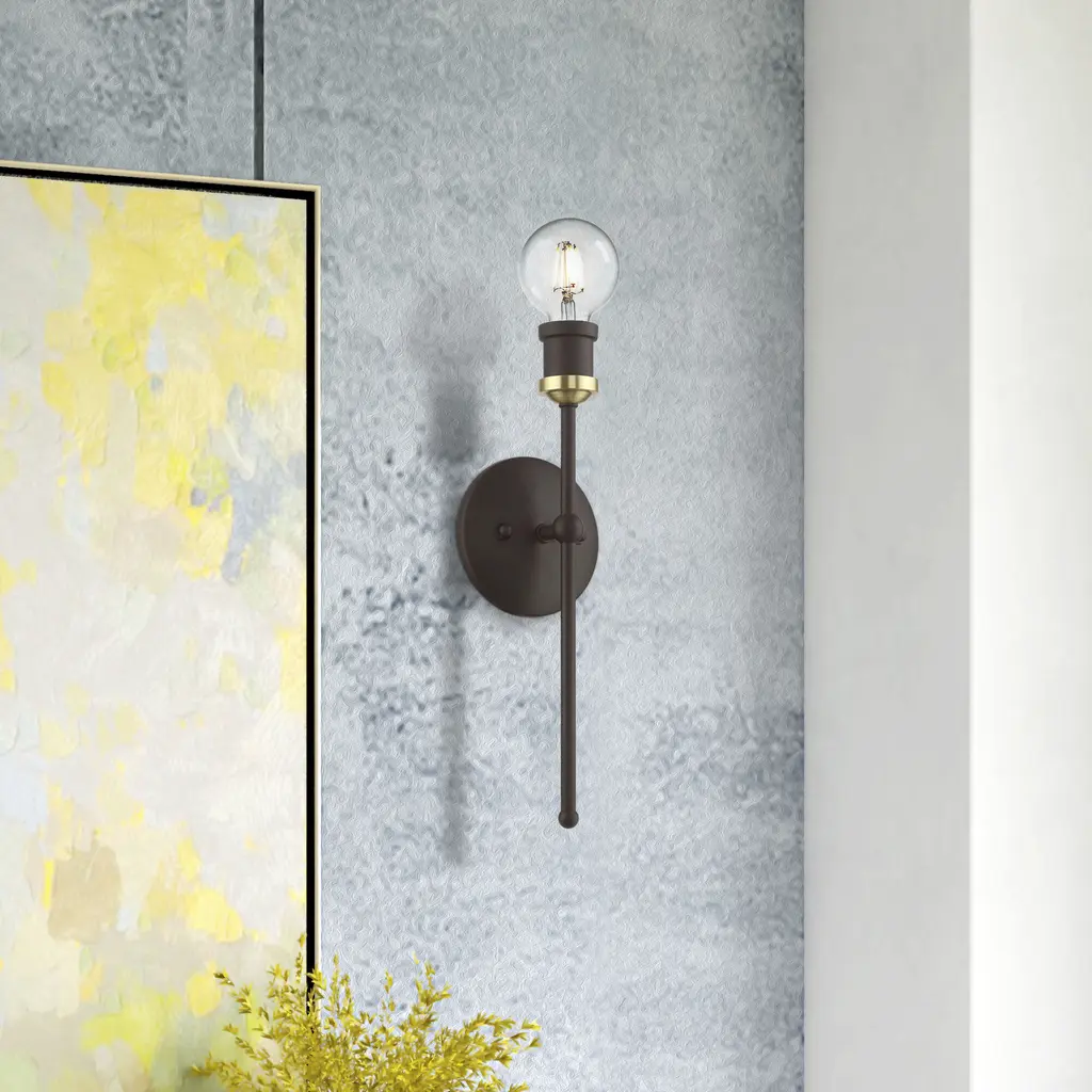 Lansdale 1 Light 5 Inch Bronze With Antique Brass Accents Ada Single Sconce Wall Light, Single