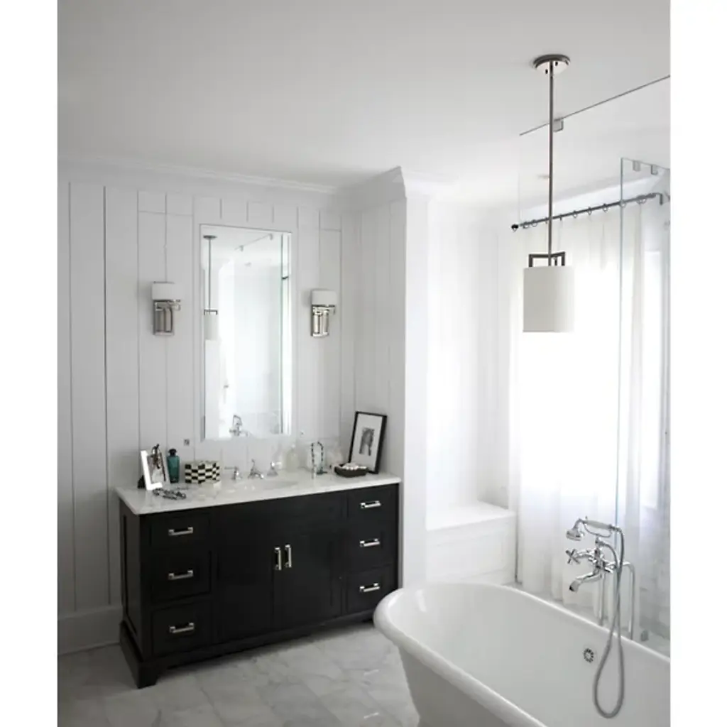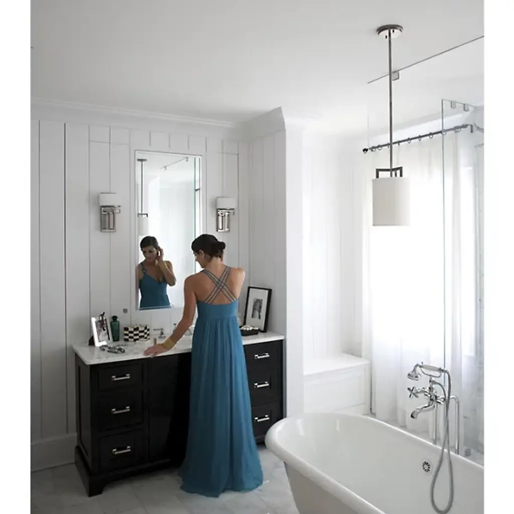 Strong lines and sleek shapes. The Lanza Wall Sconce by Hinkley Lighting shows clear influences of art deco but still manages to stand out as a juggernaut of lighting within the contemporary landscape. The fixture’s geometric influences come through on its “arm,” which holds up the etched opal glass diffuser and connects it onto the complementing backplate. When lit, the fixture radiates a soft, ambient light that’s perfect for installing in your living room, bedroom, or hallway.
