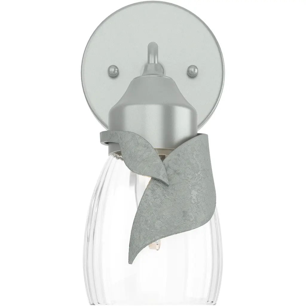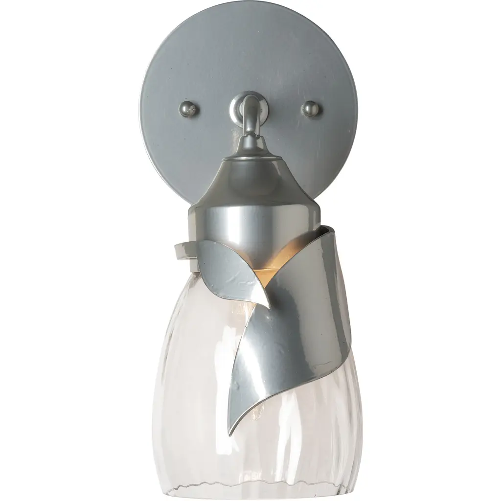 Able to be positioned for up- or downlight, the Lapas 1-Light Bath Sconce features a large and a small stylized leaf that embrace the glass shade. A single metal arm is angled from its small round backplate. Available in Black, Oil Rubbed Bronze, Vintage Platinum, Soft Gold, Sterling and Modern Brass.