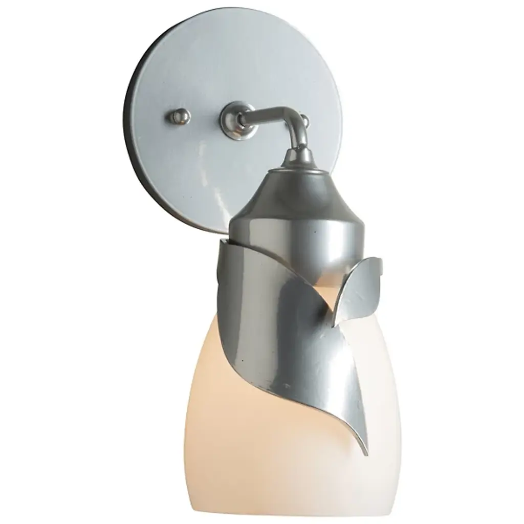Interject a little extra warm, ambient light throughout your home with the Lapas 1-Light Bathroom Wall Sconce by Hubbardton Forge. This wall sconce features a circular backplate and a minimal angled metal arm that connects to the single glass globe. Delicate metal ribbonry wraps around the top of the globe. Both sides of the ribbon are tapered to create a distinctive angle as it embraces the globe’s rose shape. Mount this refreshingly beautiful bathroom wall sconce upwards or downwards to create the directional light you need.