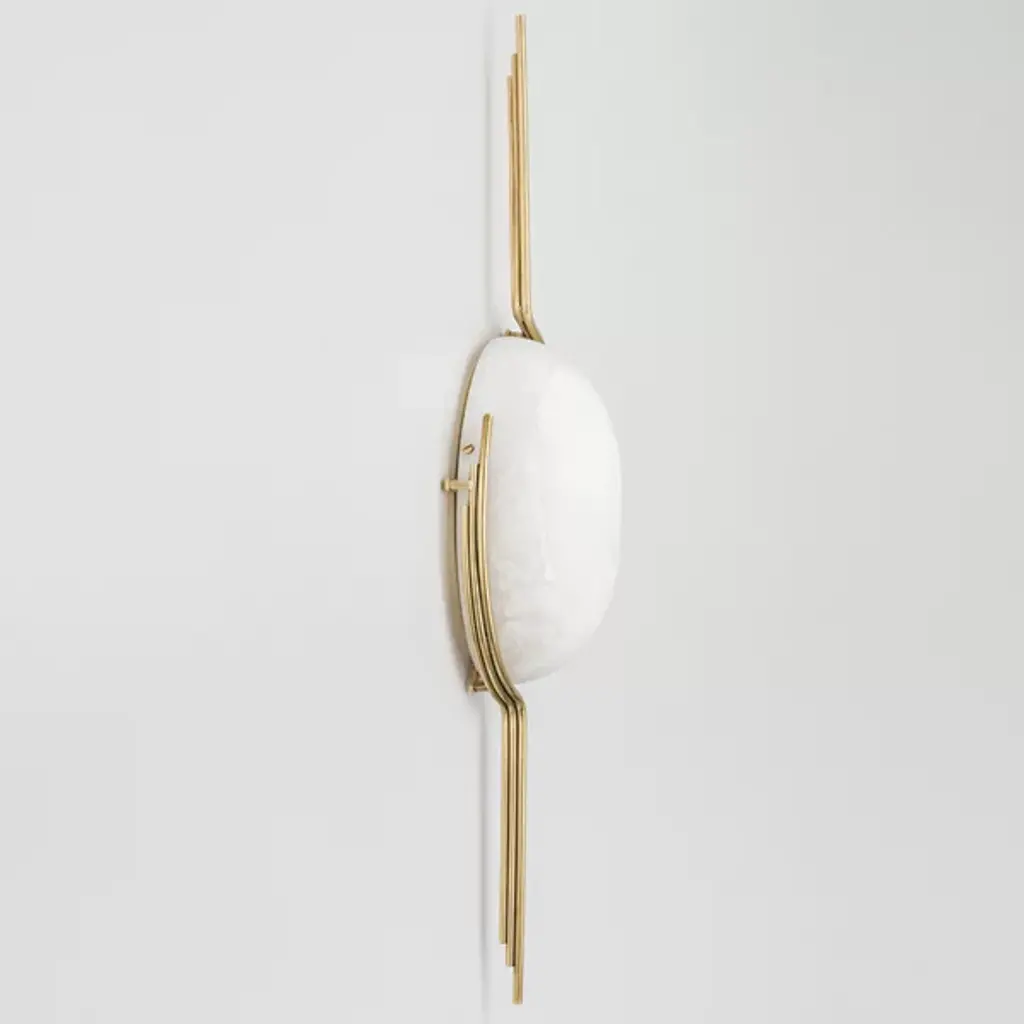 Give your home a posh appearance with the Lapis LED Wall Sconce by Corbett Lighting. Steel has been finely crafted into an ultra-slender frame boasting neatly ribbed edges. Suspended within this frame is a gorgeous oval-shaped shade of Spanish alabaster. The Lapis LED Wall Sconce effortlessly secures to your wall so that the sconce’s bright LED light can easily emanate throughout your halls. The brightness level of the light produced is adjustable when you pair this sconce with an ELV dimmer.