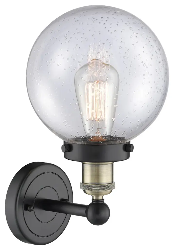 Large Beacon 1-Light 7" Sconce, Black Antique Brass Finish, Seedy Shade