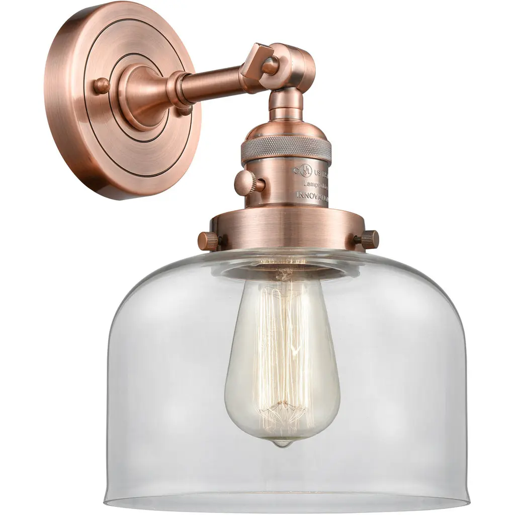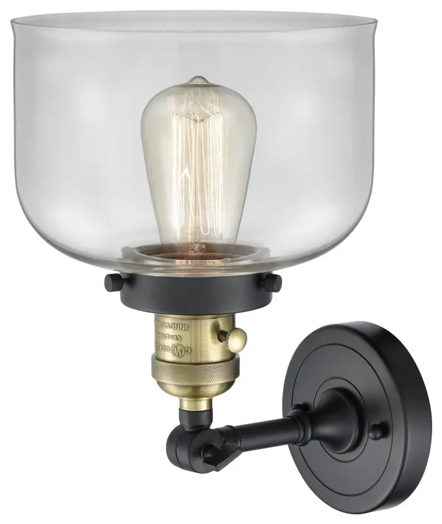Large Bell 1-Light Sconce, Black Antique Brass, Glass: Clear