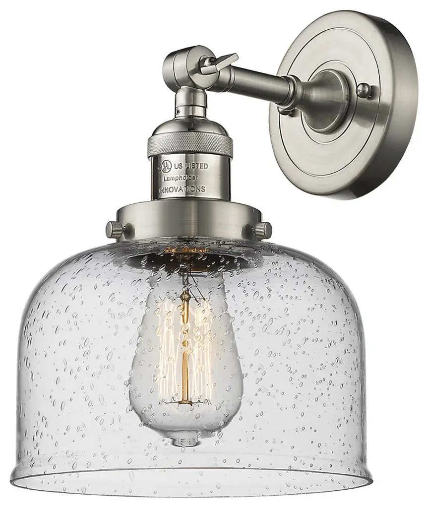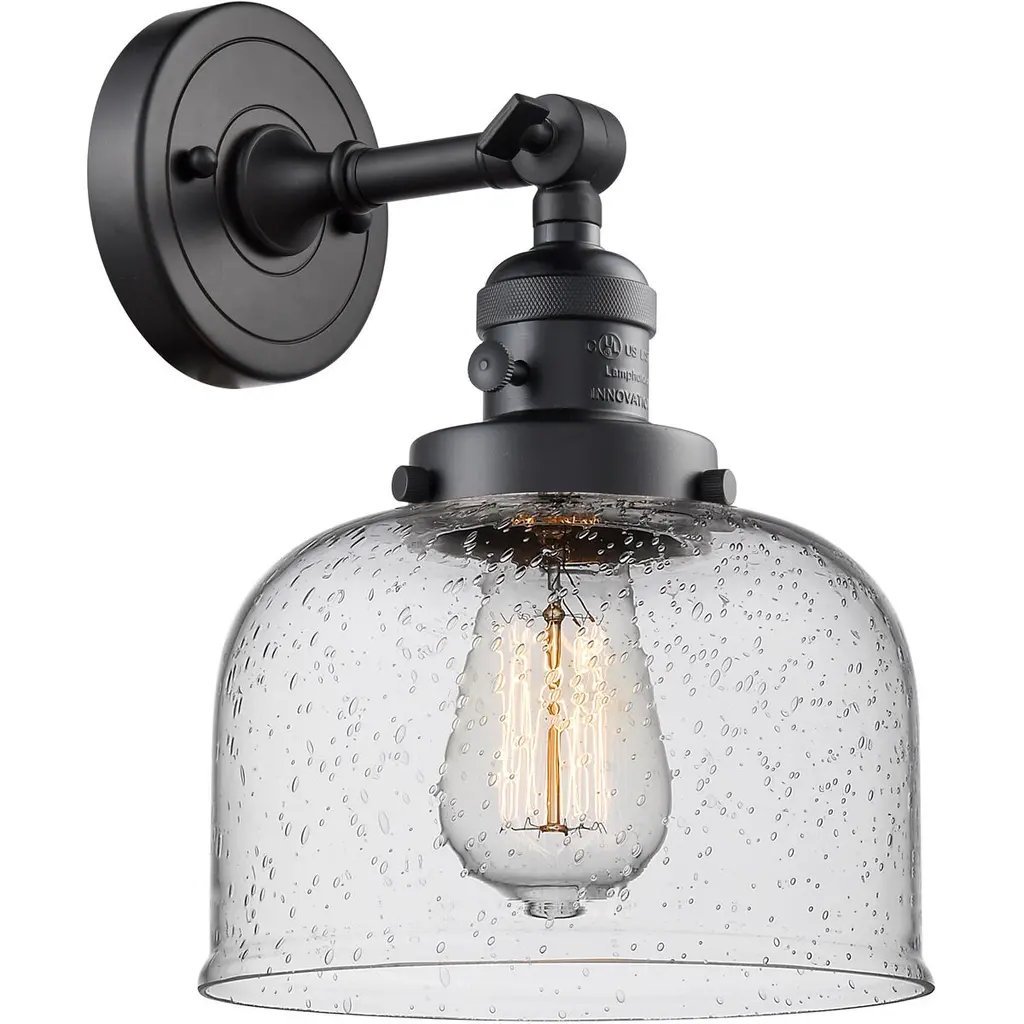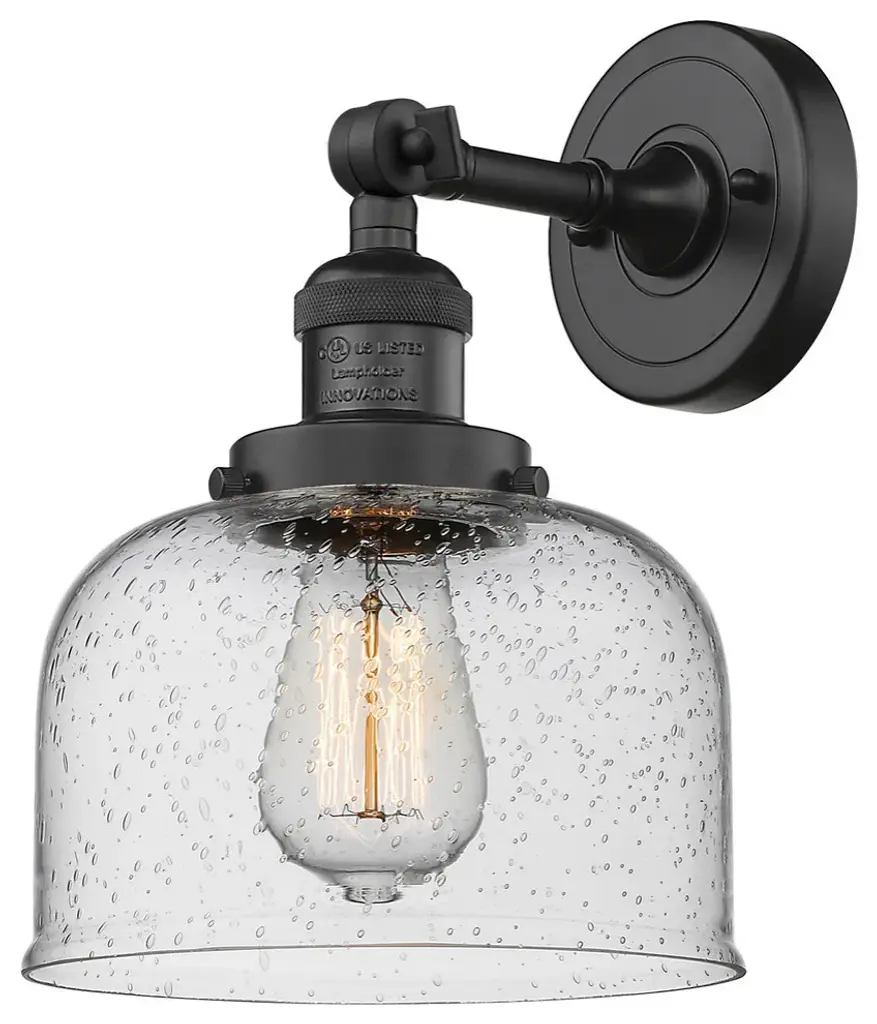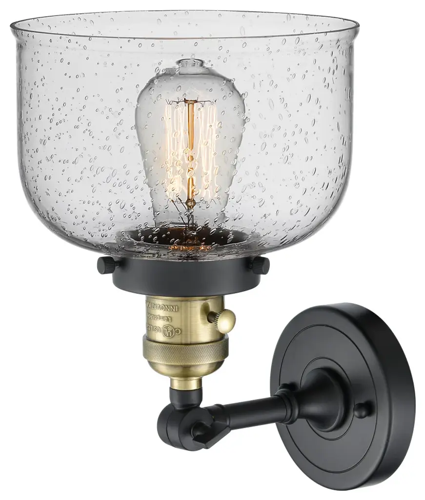 Large Bell 1-Light Sconce, Black Antique Brass, Glass: Seedy
