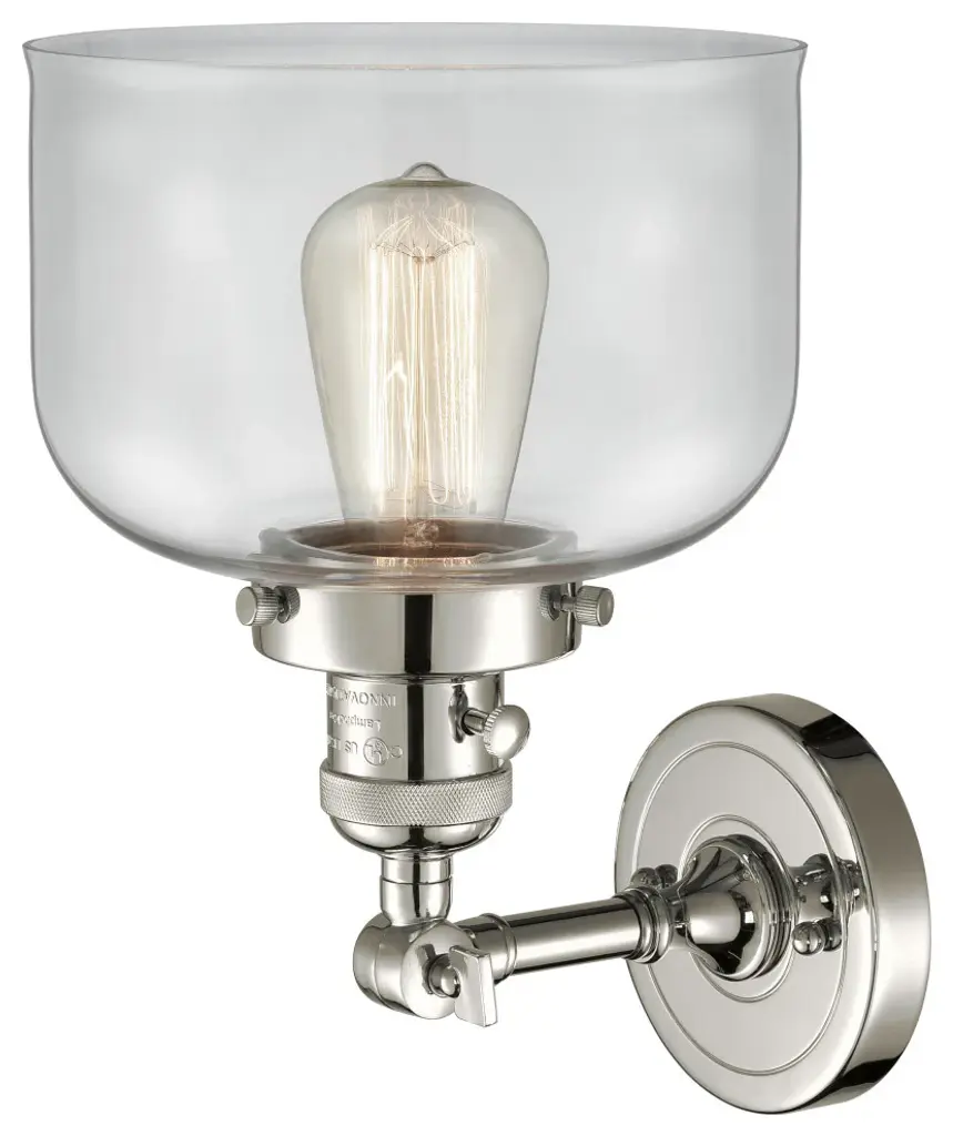 Large Bell 1-Light Sconce, Polished Nickel, Glass: Clear