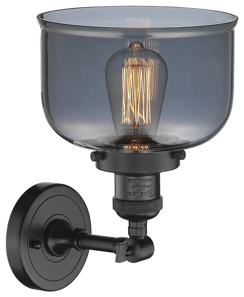 Large Bell 1-Light Sconce, Smoked Glass, Oil Rubbed Bronze