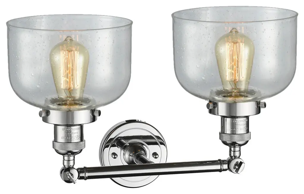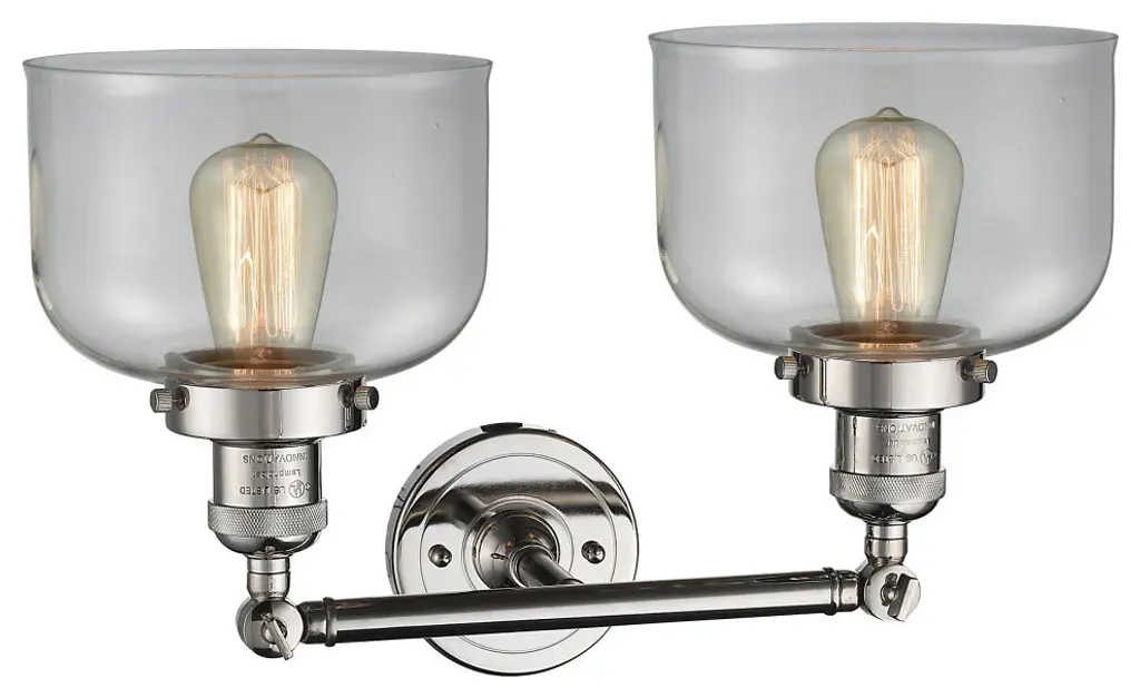 Large Bell 2-Light Bath Fixture, Clear Glass, Polished Nickel