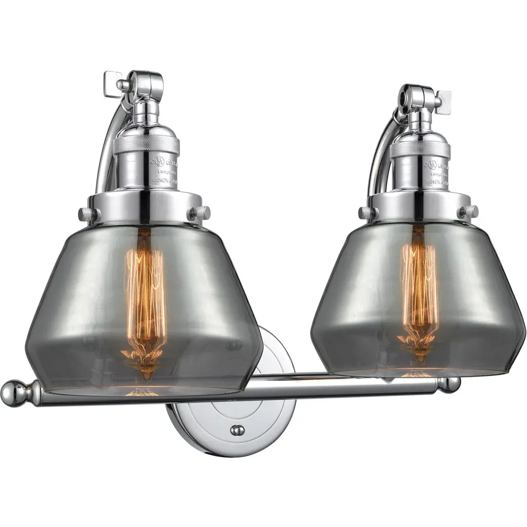 One of our largest and original collections, the Franklin Restoration is made up of a vast selection of heavy metal finishes and a large array of metal and glass shades that bring a touch of industrial into your home.Features:Solid brass 180 degree adjustable swivels with internal teeth that lock in at 5 degree intervalsFixture can be hung with bulbs facing up or down as a wall mount4.5 inch 2mm heavy cast backplateRated for 100 watt maximum per socketUL/CUL and ETL/CETL damp ratedCompatible with incandescent, LED, fluorescent and halogen bulbsNumber of Bulbs: 2Bulb Wattage: 60Bulb Type: IncandescentBulb Included: NoVoltage: 120Finish: Polished Nickel Finish Shade Finish: Clear Shade.