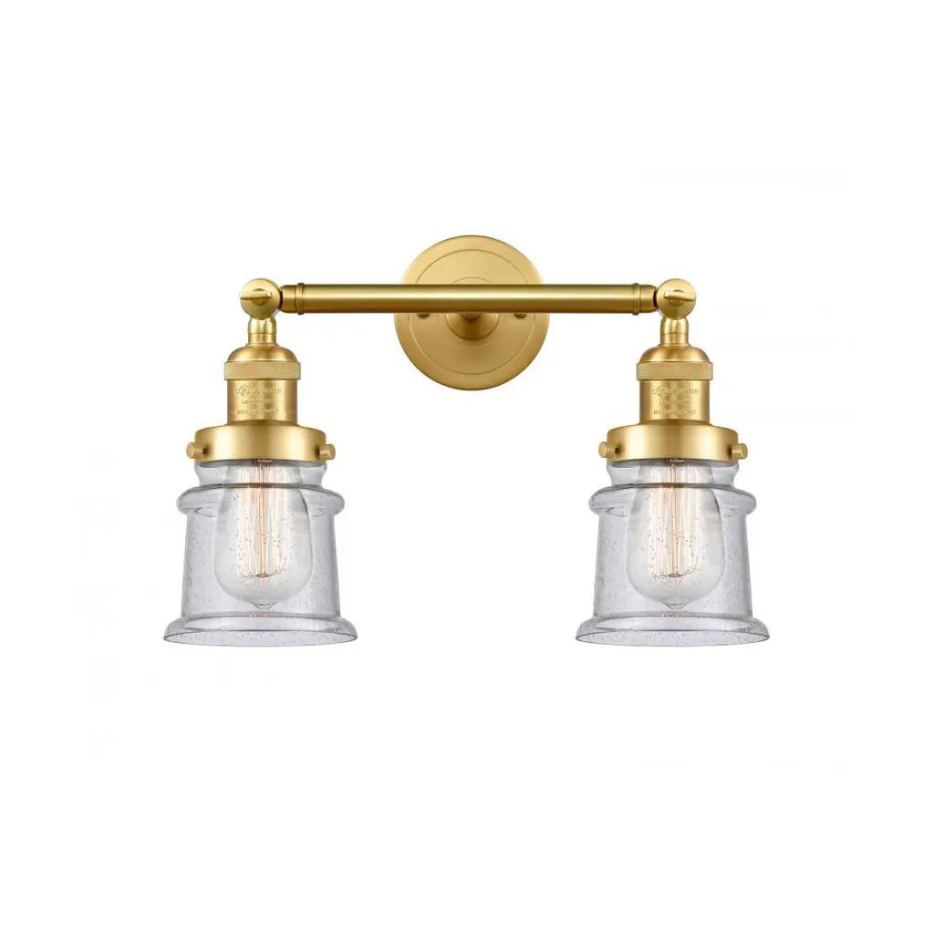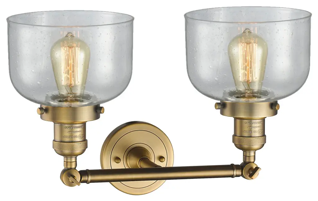 Large Bell 2-Light Bath Fixture, Seedy Glass, Brushed Brass