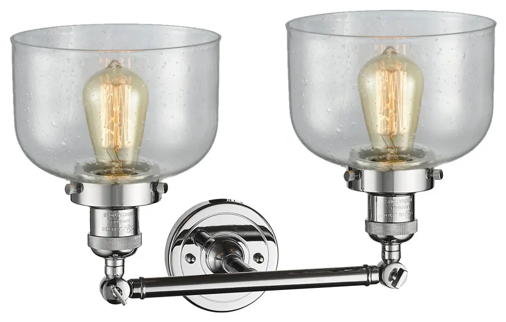 Large Bell 2-Light Bath Fixture, Seedy Glass, Polished Chrome