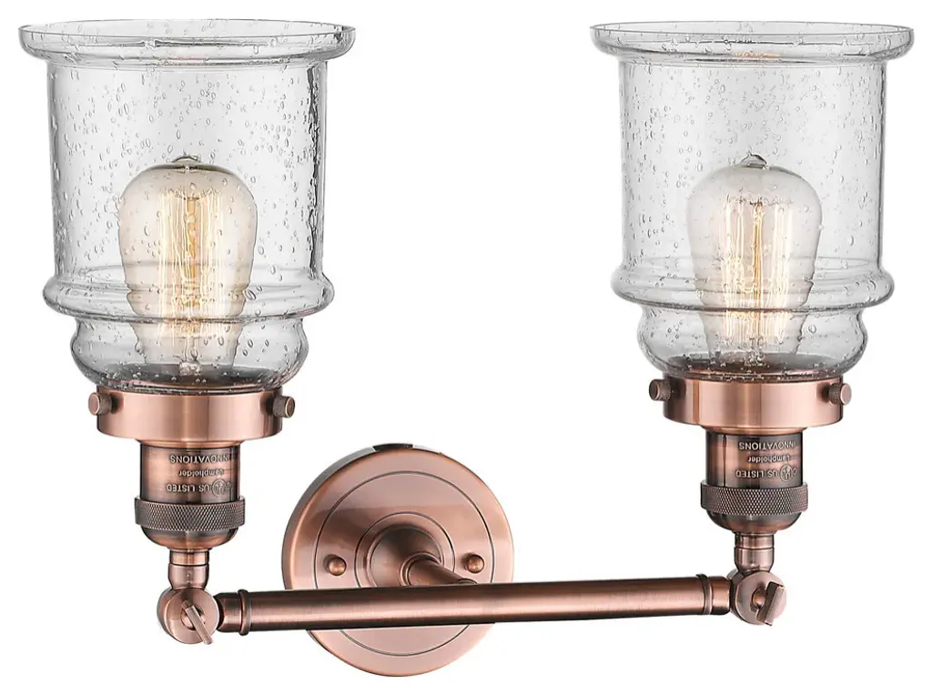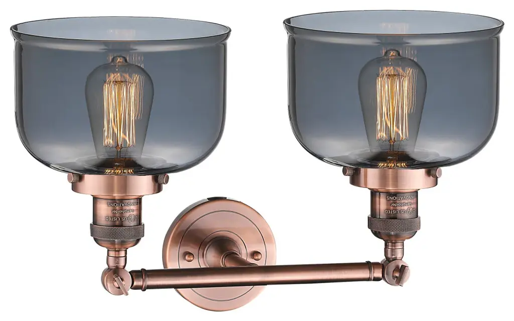 Large Bell 2-Light Bath Fixture, Smoked Glass, Antique Copper