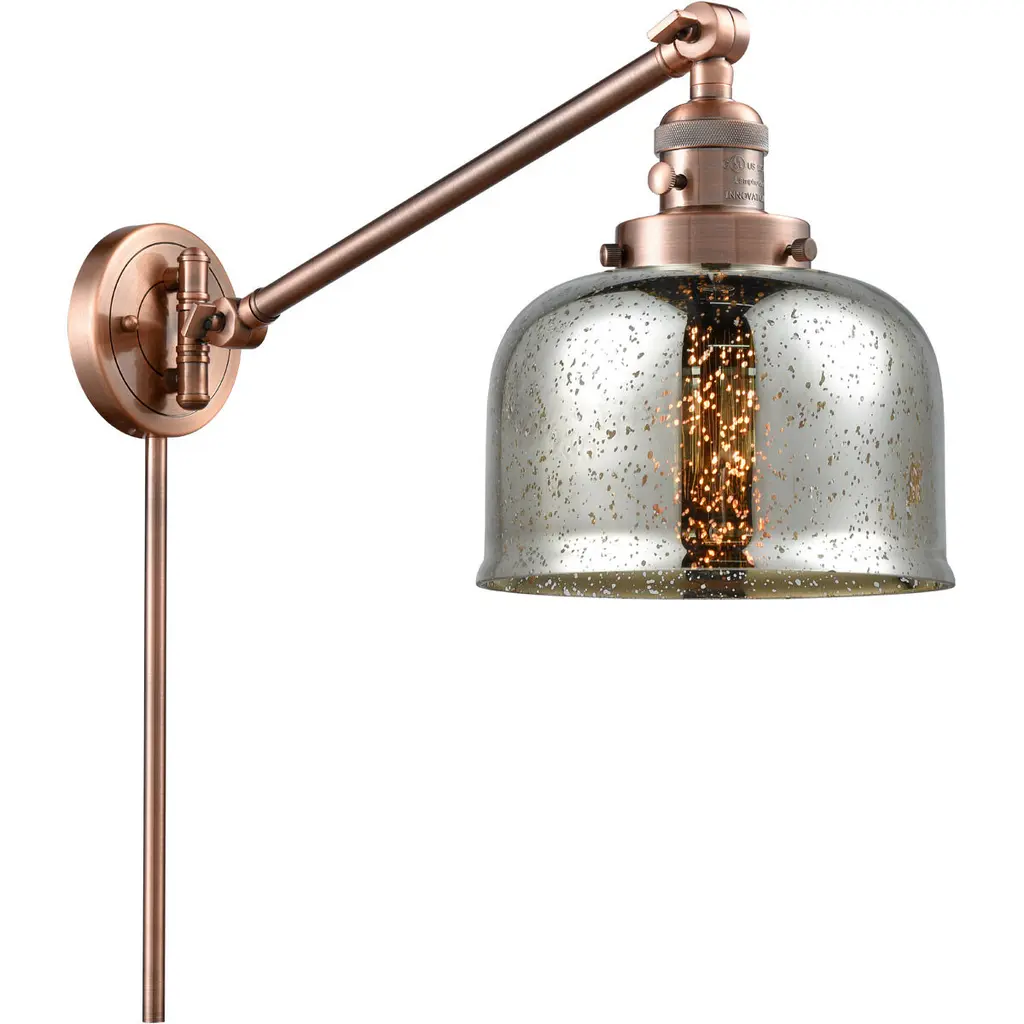 Large Bell 30 Inch 3.50 Watt Antique Copper Swing Arm Wall Light, Franklin Restoration