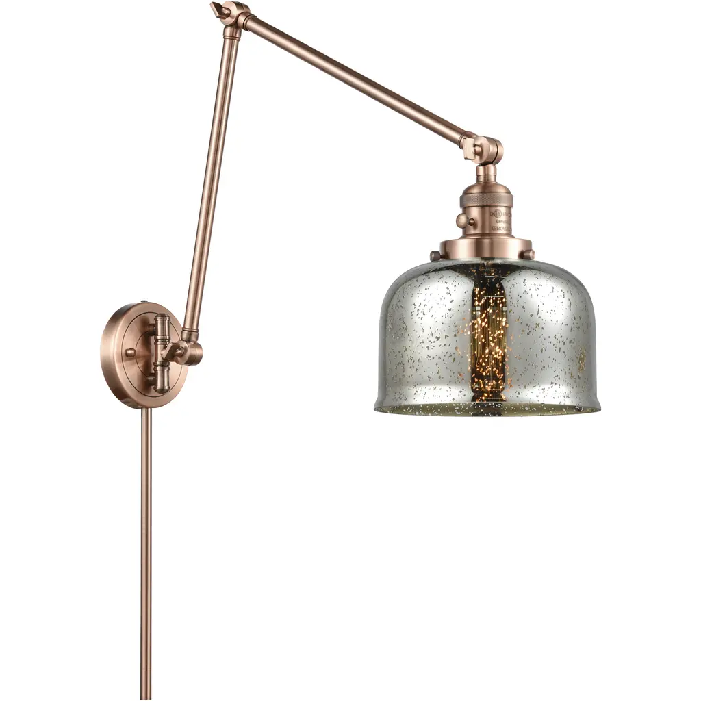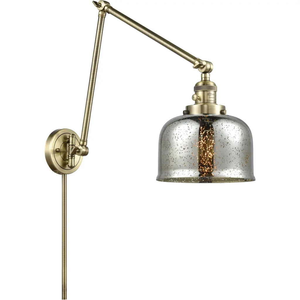 Large Bell 30 Inch 3.50 Watt Brushed Brass Swing Arm Wall Light, Franklin Restoration