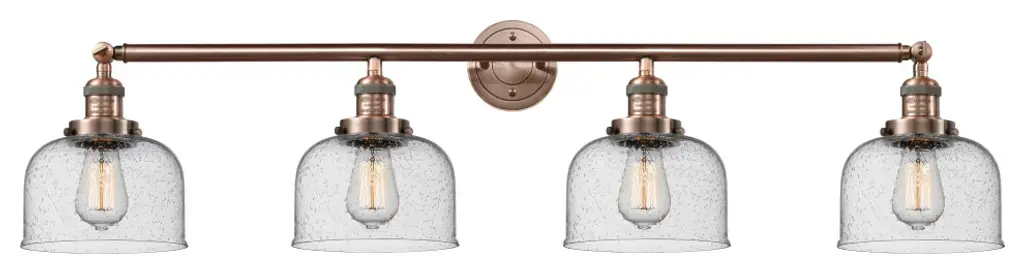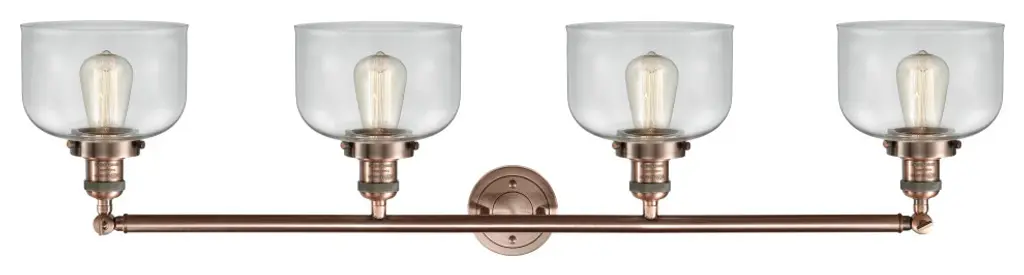 Large Bell 4-Light Bath Fixture, Clear Glass, Antique Copper