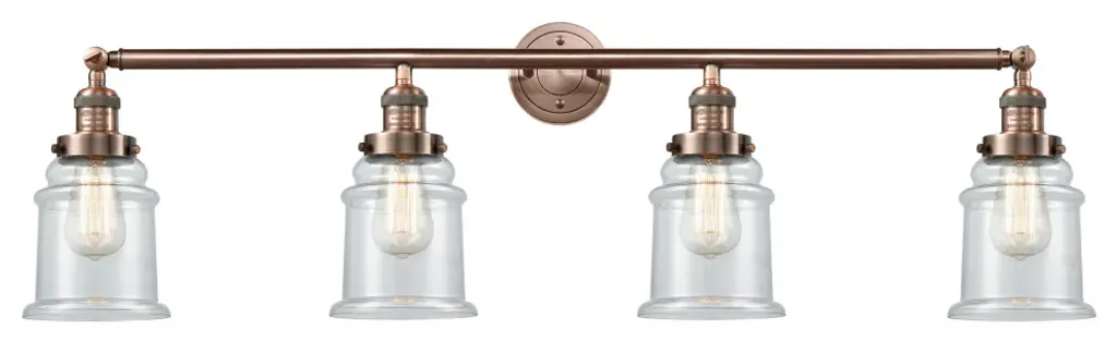 One of our largest and original collections, the Franklin Restoration is made up of a vast selection of heavy metal finishes and a large array of metal and glass shades that bring a touch of industrial into your home.Features:Solid brass 180 degree adjustable swivels with internal teeth that lock in at 5 degree intervals with engraved cast cupRated for 100 watt maximum per socketUL/CUL Damp RatedCompatible with Incandescent, LED, Fluorescent and Halogen bulbsNumber of Bulbs: 4Bulb Wattage: 100Bulb Type: IncandescentBulb Included: NoVoltage: 120Finish: Antique Copper Finish Shade Finish: Seedy Shade.