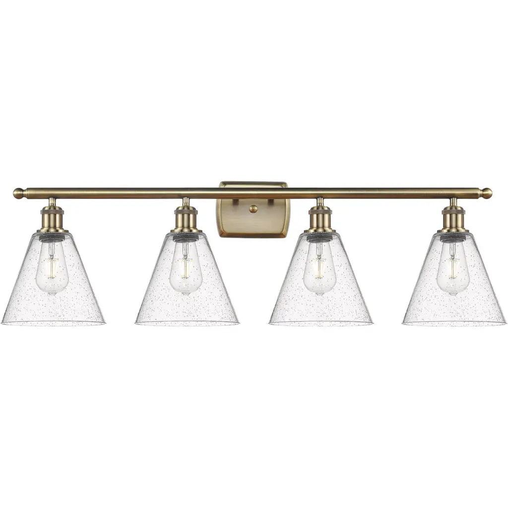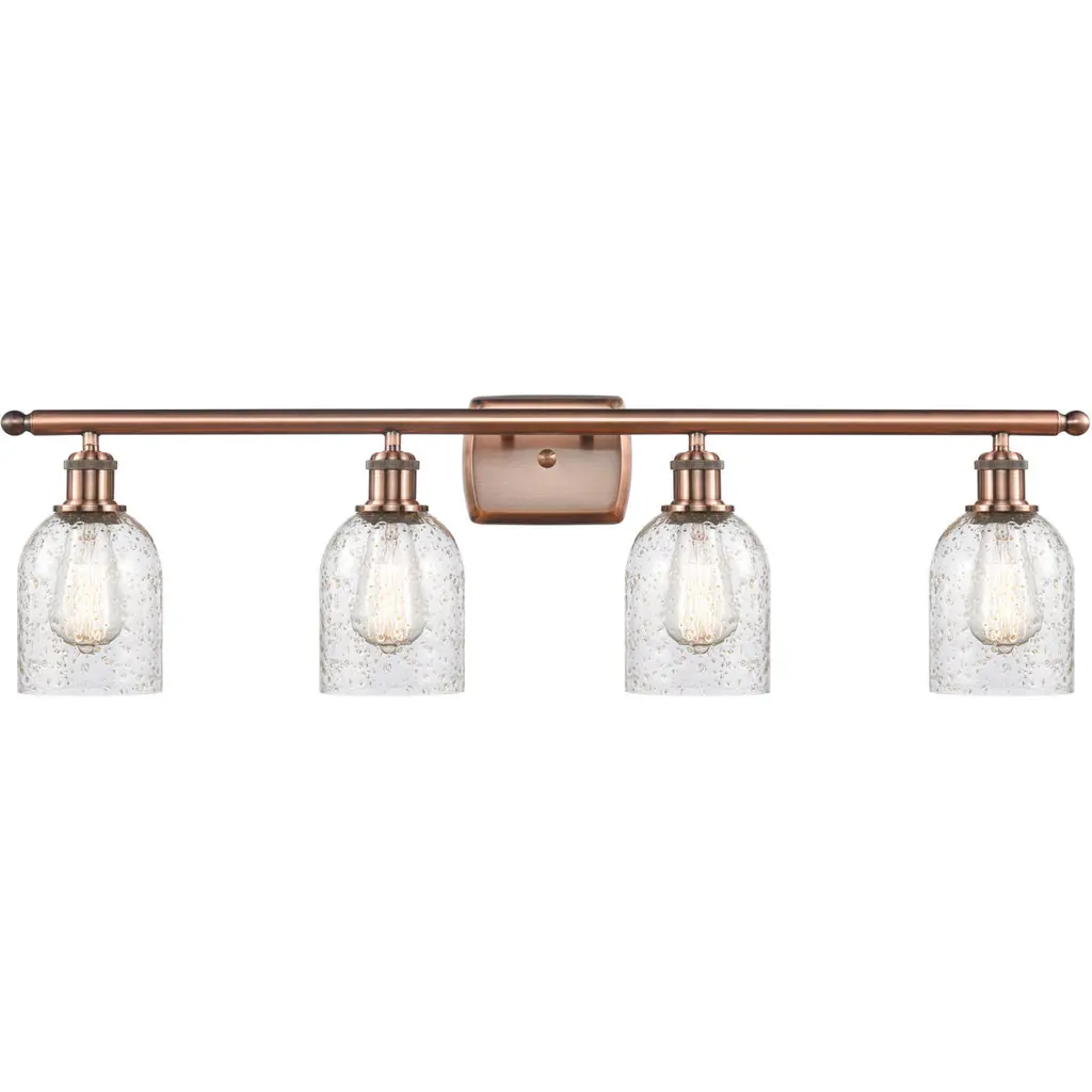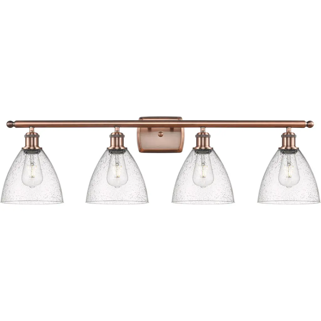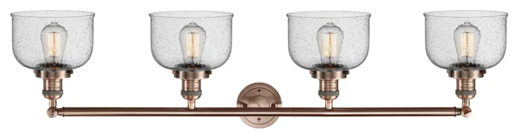 Large Bell 4-Light Bath Fixture, Seedy Glass, Antique Copper