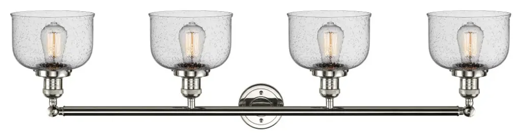 Large Bell 4-Light Bath Fixture, Seedy Glass, Polished Nickel