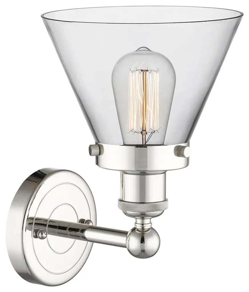 Large Cone 1-Light 7" Sconce, Polished Nickel Finish, Clear Shade