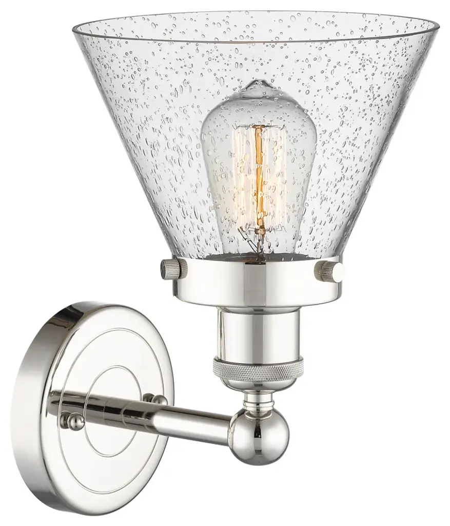 Large Cone 1-Light 7" Sconce, Polished Nickel Finish, Seedy Shade