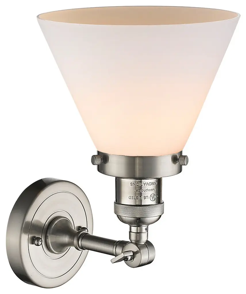 Large Cone 1-Light Led Sconce, Brushed Satin Nickel, Glass: Matte White Cased