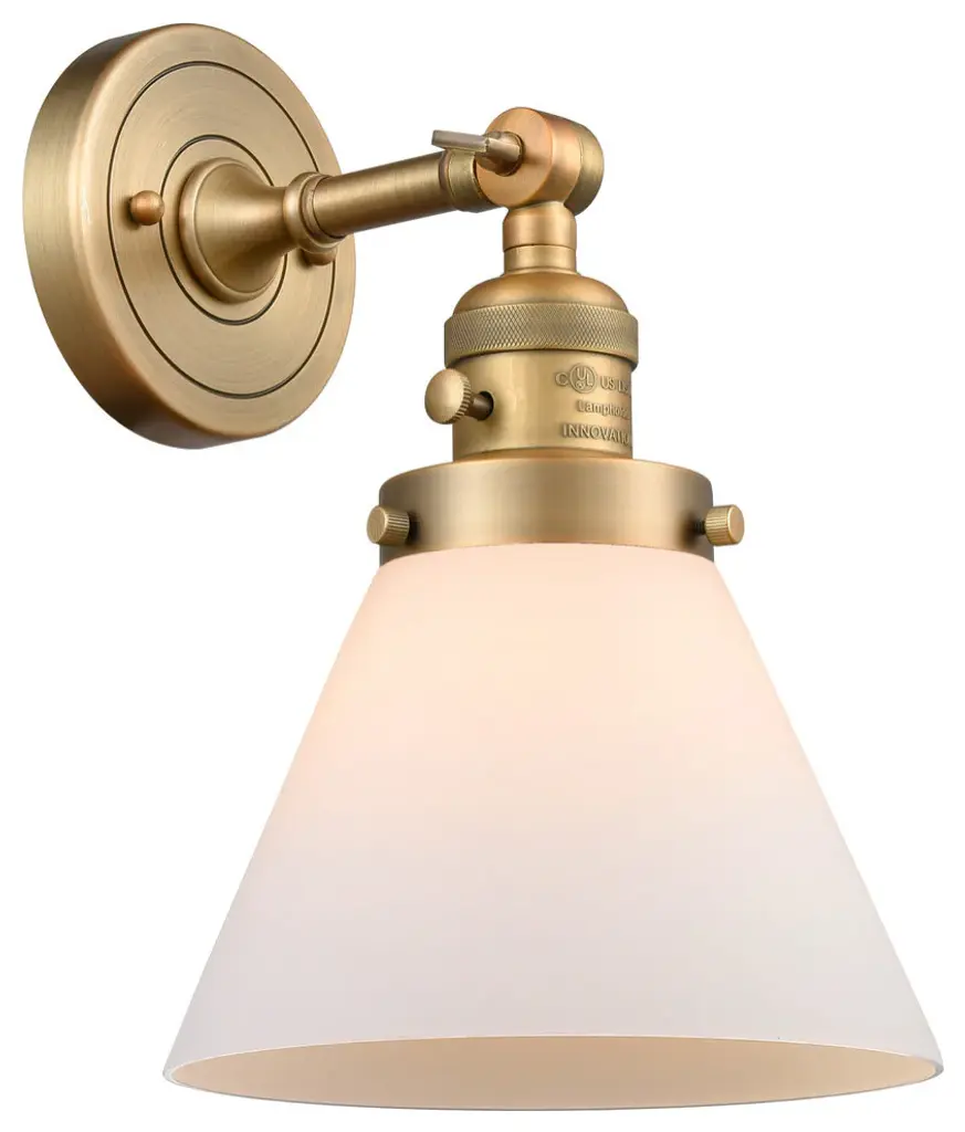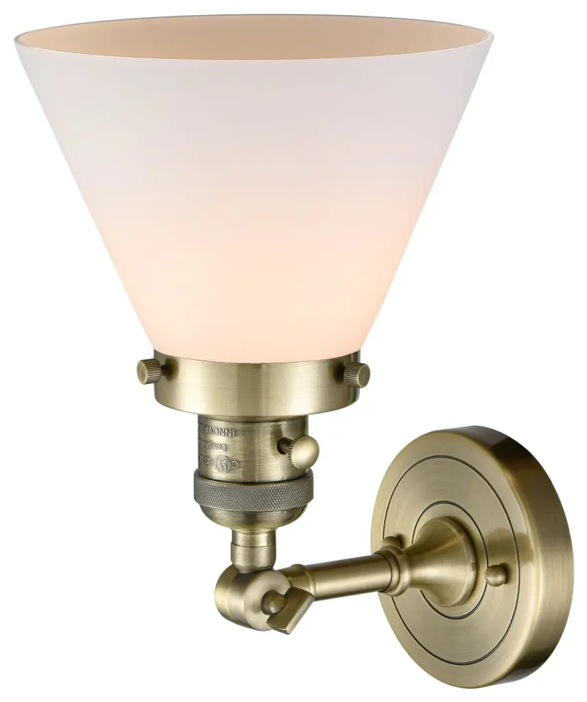 Large Cone 1-Light Sconce, Antique Brass, Glass: Matte White Cased
