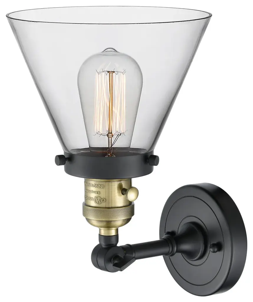 Large Cone 1-Light Sconce, Black Antique Brass, Glass: Clear